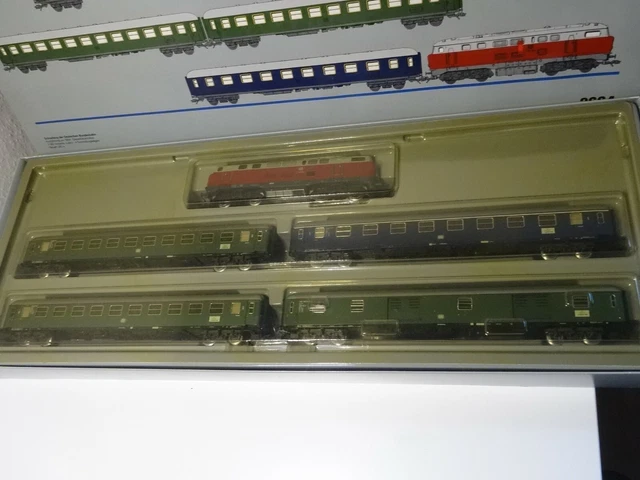 Enthalten: Elektrolok BR 140 mit Glockenankermotor und LED-Beleuchtung plus 3 fest gekuppelte Wagenpaare.