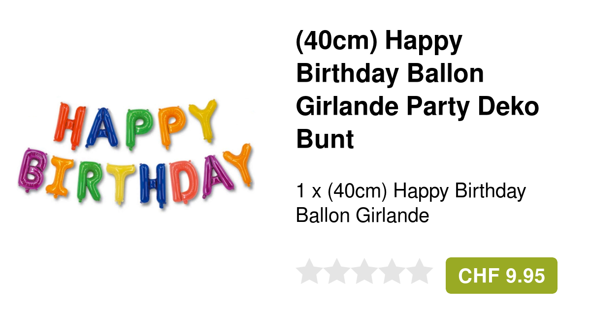 Party time! Mit dieser bunten Ballon-Girlande wird jede Geburtstagsfeier zum Hit! Enthält Ballons in 4 knalligen Farben plus glänzende Sterne und die Aufschrift 'Happy Birthday'. Super einfach aufzublasen und zu befestigen - auch für Dekorations-Anfänger geeignet. Wiederverwendbar für die nächste Feier. Perfekt für Kinder und Erwachsene, Jungs und Mädchen. Aber Achtung: Bitte von scharfen Gegenständen fernhalten und nicht in der prallen Sonne lassen. Für Kinder ab 3 Jahren - jüngere Kinder nicht unbeaufsichtigt lassen. Etwas Geduld beim Aufbauen - aber das Ergebnis lohnt sich! Macht jede Party fröhlich und bunt!
