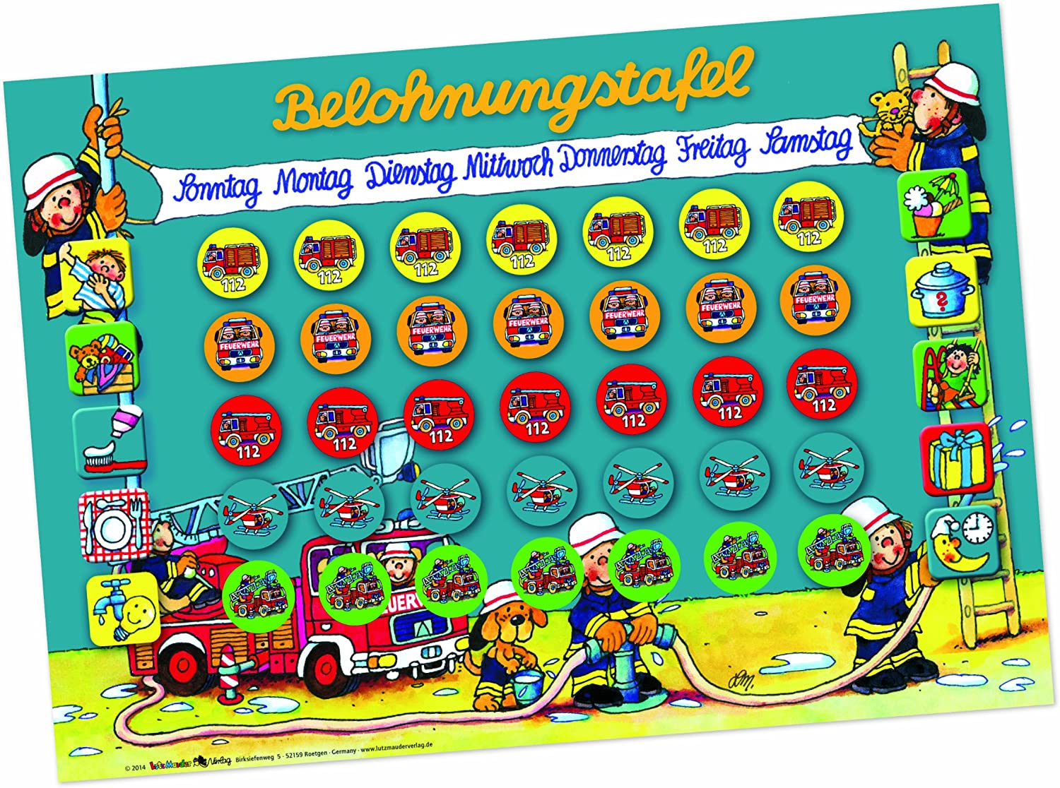 Du suchst ne lustige Art, deine Kids zu belohnen? Mit dieser Feuerwehrmann Benny Tafel von Lutz Mauder wird Belohnen zum Spaß! Die witzigen Motive sind nicht nur praktisch, sondern sehen auch noch cool aus im Kinderzimmer. Die Tafel lässt sich super easy in den Alltag integrieren - ob für Hausaufgaben, Hilfsbereitschaft oder einfach nur fürs Mitmachen im Haushalt. Die Kids haben nen visuellen Anreiz und du musst nicht ständig meckern. Das Motiv ist richtig niedlich gemacht - Feuerwehrmann Benny mit seinem freundlichen Gesicht. Und das Beste: Die Tafel wird zu nem dekorativen Element im Zimmer, statt nur irgendein langweiliges Tool zu sein. Achtung nur: Die Verpackung ist kein Spielzeug, die solltest du wegwerfen bevor die Kids damit spielen. Aber die Tafel selbst ist robust und hält was aus. Also wenn du mal ne andere Art der Motivation ausprobieren willst - hier hast du was Lustiges und Praktisches in einem. Und wer weiß, vielleicht macht's ja sogar dir Spaß, die Smileys oder Punkte zu verteilen!