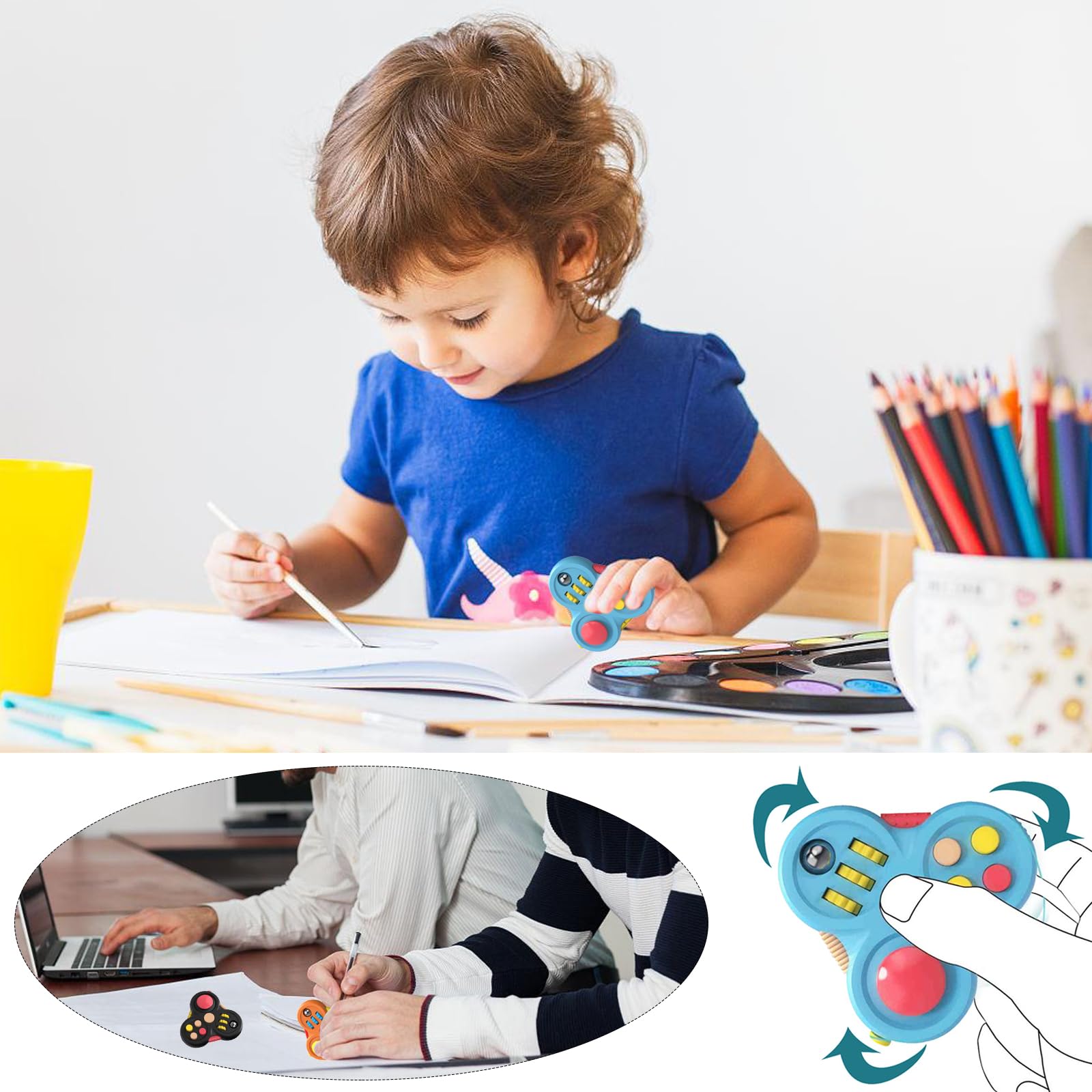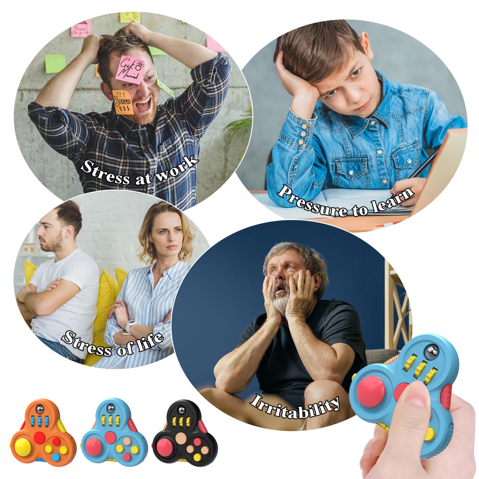 Boah, diese Anti-Stress Würfel sind ja mal richtig addicting! Jeder Würfel hat 6 Seiten mit verschiedenen Funktionen - da ist für jede Unruhe was dabei: Joystick zum Spielen, Räder und Bälle die super smooth rollen, Klick-Knöpfe (manche mit Sound, manche ohne), Schieber, Massagerädchen, Zahnräder, Schalter und noch mehr! Aus hochwertigem Silikon und ABS-Kunststoff - ungiftig und robust. Perfekt für Kinder mit ADHS, Autismus oder einfach für gestresste Erwachsene im Büro. Kannst du überall mitnehmen: ins Büro, in die Schule, in Bus und Bahn - überall wo du mal nervös wirst oder dich konzentrieren musst. Einfach in die Hand nehmen und rumspielen - das beruhigt total und hilft dir, dich zu fokussieren. Macht auch super Spaß und ist ein tolles Geschenk für jeden, der mal abschalten will. Mit drei Stück in verschiedenen Farben (Schwarz, Blau, Orange) hast du immer Abwechslung! Einfach ausprobieren - du wirst sehen, wie entspannend das ist!