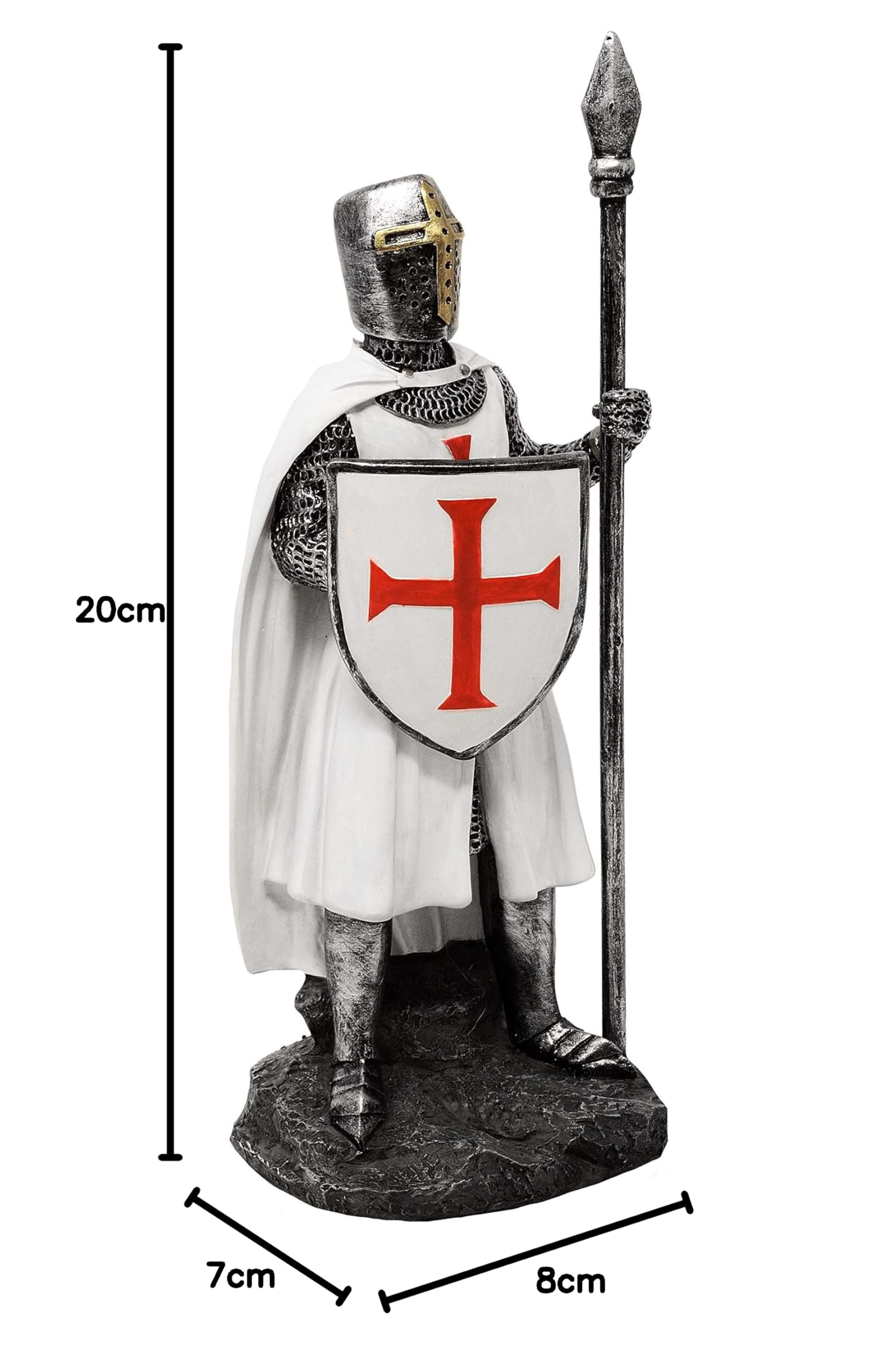 Boah, diese Kreuzritter-Figur von MystiCalls ist ja mal richtig episch! In silber-bronzefarben mit nem krassen Speer - sieht aus wie aus nem Mittelalter-Film. Mit ca. 20cm Höhe, 8cm Breite und 7cm Tiefe ist sie ein echter Hingucker. Super detailliert verarbeitet und handbemalt - da sieht man jede einzelne Rüstungs-Platte. Aus hochwertigem Polyresin-Material - robust und langlebig. Perfekt für Sammler oder als Deko fürs Regal. Ob als Templer, Ritter oder einfach nur als coole Figur - dieses Teil macht was her. Stell sie ins Wohnzimmer, Büro oder ins Schlafzimmer - überall zieht sie Blicke auf sich. Einfach ein muss für alle Mittelalter-Fans!