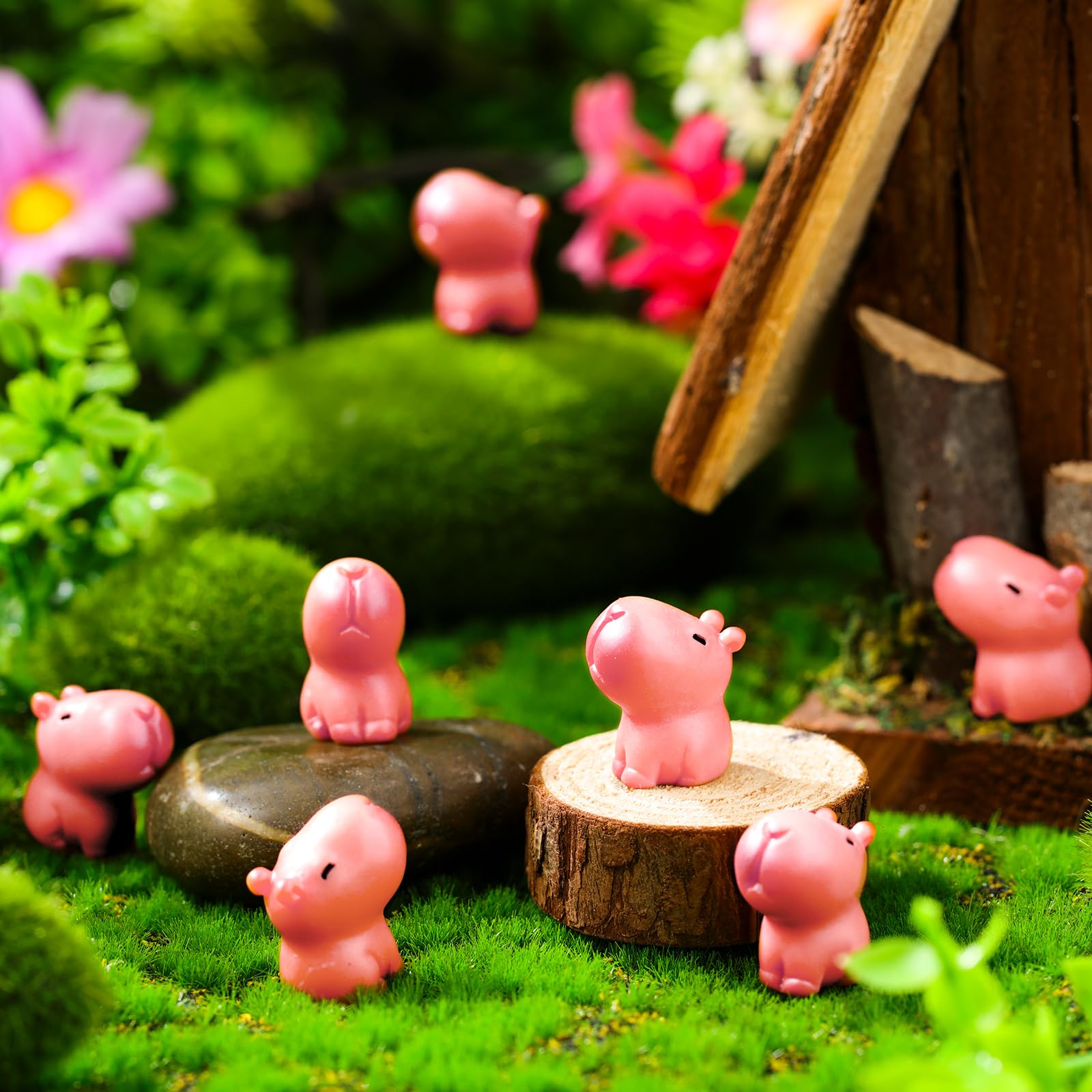 Wie süß sind denn diese kleinen Capybaras! Dieses 9-teilige Set mit mini Plüsch-Kapibaras ist einfach nur niedlich. Jede Figur ist etwa 3x2,8x4 cm groß und aus weichem Plüsch mit Kunststoffanteilen. Perfekt für alle möglichen Deko-Ideen: Auf Torten für Kindergeburtstage, in Miniaturlandschaften, als Tischdekoration oder einfach als süße Accessoires im Regal. Die verschiedenen Farben und Posen machen das Set besonders abwechslungsreich. Super für DIY-Projekte, Mooslandschaften oder als kleine Geschenke für Capybara-Fans. Auch für Erwachsene, die diese entspannten Tiere lieben, sind die Figuren ein echter Hingucker. Einfach überall verteilen, wo's ein bisschen mehr Niedlichkeit braucht! Die Qualität ist top - frisch gefärbt und langlebig verarbeitet. Macht sich auch super in Blumentöpfen oder als Auto-Deko. Einfach ein vielseitiges Deko-Set, das garantiert für Lächeln sorgt!
