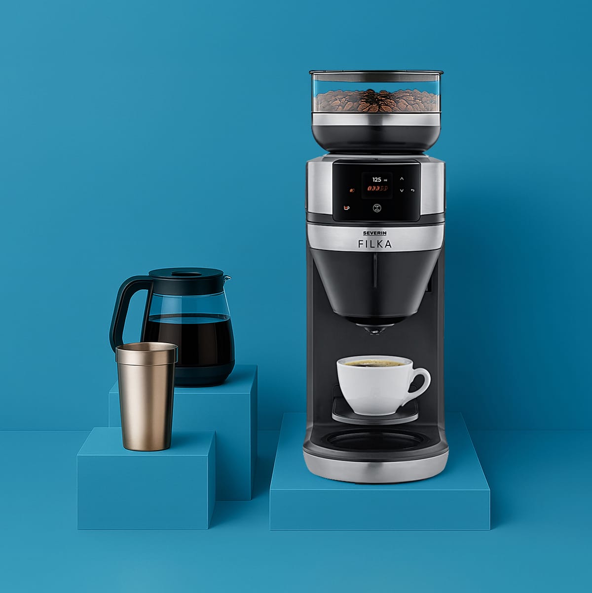 Der perfekte Start in den Tag! Diese SEVERIN Kaffeemaschine brüht bis zu 10 Tassen aromatischen Filterkaffee. Einfach zu bedienen mit übersichtlicher Wasserstandsanzeige und Schwenkfilter mit Tropfstopp. Die Glaskanne mit Warmhalteplatte hält deinen Kaffee lange heiß und lecker. Du kannst Kaffee- und Wassermenge individuell anpassen - für milden oder starken Kaffee nach deinem Geschmack. Im edlen Design aus Edelstahl und Schwarz. Deutsche Qualität seit über 65 Jahren - robust und zuverlässig. Perfekt für Morgenmuffel, Kaffeeliebhaber und alle, die guten Kaffee schätzen. Inklusive 2 Jahre Garantie - dein treuer Begleiter für jeden Tag!