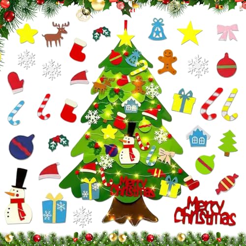 • GothicBride Filz Weihnachtsbaum Kinder - DIY Mit 40 Ornamenten & LED Lichtern