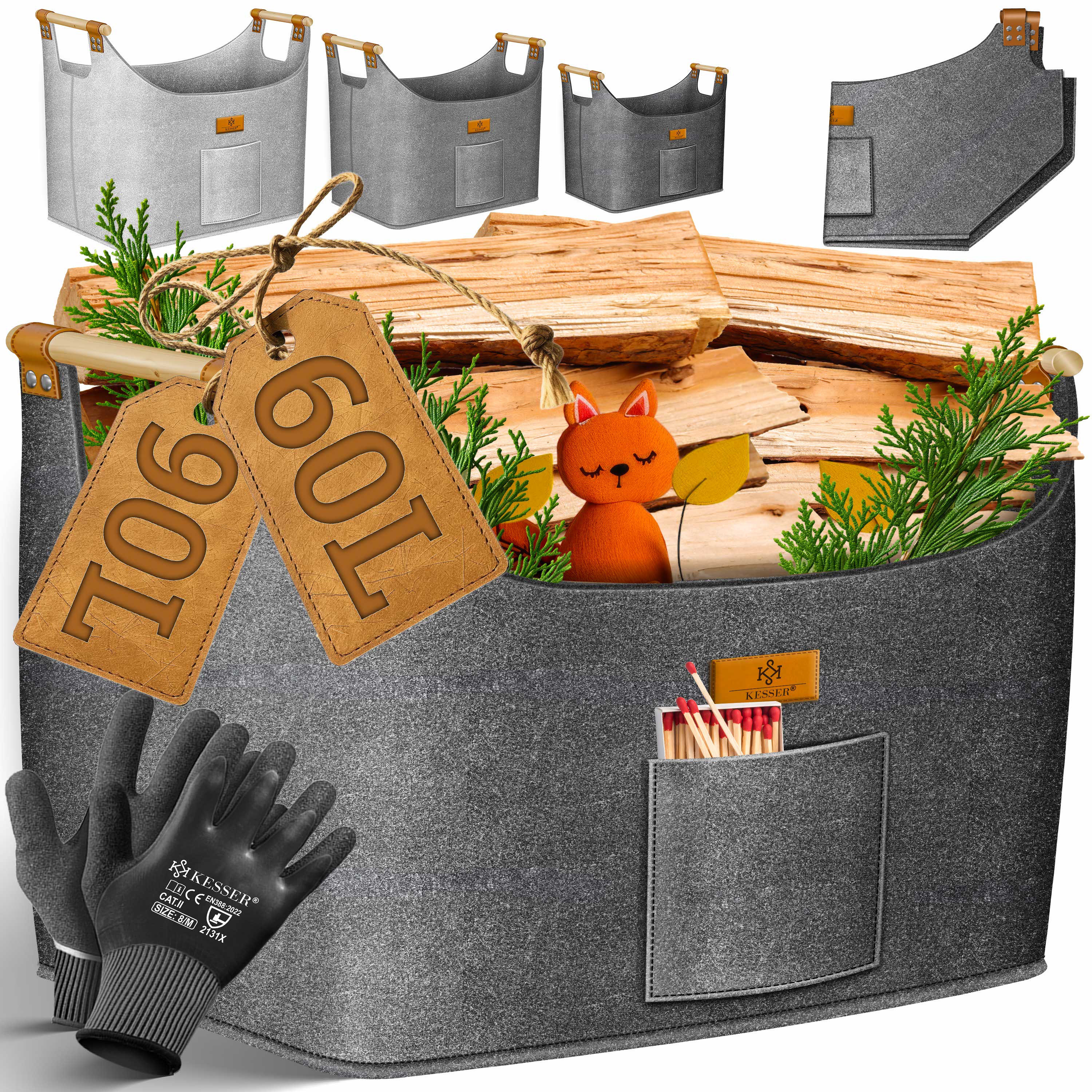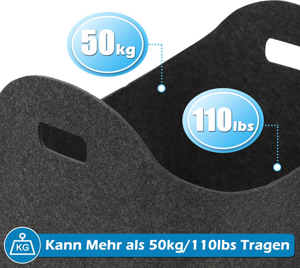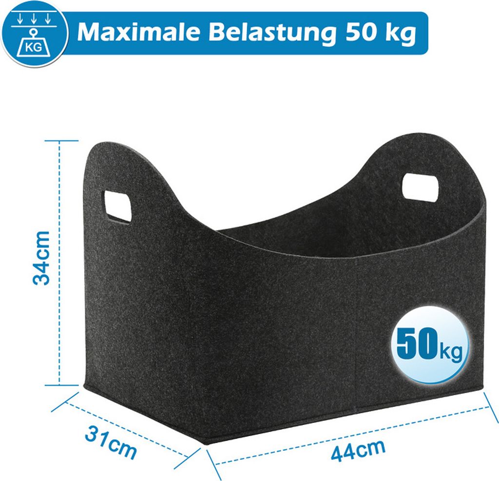 • Jopassy Filzkorb Für Kaminholz 44x31x34cm - Verstärkter Holzkorb Faltbar Grau