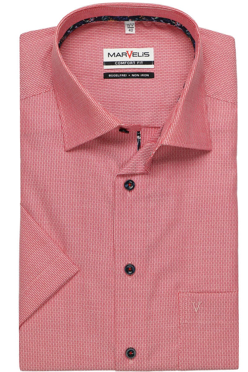 Kennst du das auch? Du willst gut aussehen, aber hast keine Lust auf stundenlanges Bügeln? Dann ist dieses Marvelis Hemd genau das Richtige für dich! Das Comfort Fit Hemd in einem tollen Bordeaux rot mit dezentem Muster ist komplett bügelfrei - einfach waschen, aufhängen und schon bist du bereit für den Tag. Aus atmungsaktivem Popeline-Stoff gefertigt, der Feuchtigkeit super absorbiert und für ein angenehmes Tragegefühl sorgt. Die verstellbaren Office-Manschetten mit Kombi-Funktion (2 Knöpfe zur Weitenregulierung) geben dir die perfekte Passform. Und das Beste: Das Hemd ist nach Öko-Tex Standard 100 geprüft, also absolut hautverträglich. Mit der bestickten Brusttasche und dem eleganten Design machst du im Büro genauso eine gute Figur wie bei besonderen Anlässen. Artikelnr. 7018.84.39 - ein echter Allrounder für alle, die Wert auf Stil und Komfort legen!