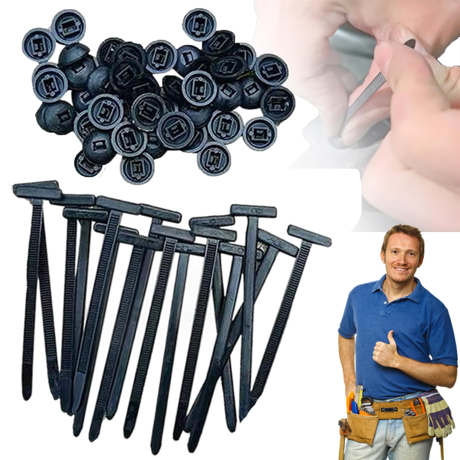 Die praktische Lösung für schnelle Auto-Reparaturen! Diese 50 Snap-Fit Clips aus robustem Nylon ersetzen lästige Schrauben und Clips in deinem Fahrzeug. Einfach drücken - schon rastet der Clip ein und sichert Kotflügel, Motorabdeckungen, Kofferraumverkleidungen oder Unterbodenbleche. Ohne Werkzeug, ohne Vorkenntnisse! Das verstärkte Nylonmaterial hält Hitze und Abnutzung stand und ist für den Innen- und Außeneinsatz geeignet. Super praktisch nicht nur für Auto-Reparaturen, sondern auch zum Organisieren von Kabeln oder Werkzeugen in Garage und Haushalt. Die kompakten Clips passen in jeden Handschuhkasten - ideal für unterwegs bei kleinen Notrepariaturen. Spare Zeit und Nerven bei Wartungsarbeiten an deinem Auto, Truck oder Wohnmobil. Mit diesem Set hast du immer die passenden Clips griffbereit und kannst Verschleißteile schnell und kostengünstig ersetzen. Ein echter Alleskönner für jeden Heimwerker und Autobesitzer!