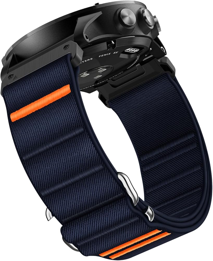 Verpasse deiner Garmin Uhr frischen Style mit diesem QuickFit Nylon-Armband! Kompatibel mit Fenix 8, 7X, 6X Pro, Epix Pro, Enduro und anderen 26mm Modellen. Super leicht mit nur 25g Gewicht - du spürst es kaum am Handgelenk. Das Nylon-Material ist angenehm zu tragen, wasserbeständig und trocknet schnell. Perfekt für Sport, Alltag oder besondere Anlässe. Die QuickFit-Technologie macht den Wechsel super einfach - einfach das alte Armband abziehen, neues draufklicken, fertig! Ohne Werkzeuge in Sekunden erledigt. Wichtig: Bitte vorher genau prüfen, ob dein Garmin-Modell die 26mm Aufnahme hat. Das Armband kommt alleine - die Uhr ist nicht dabei. Gib deiner Uhr ein neues Look und fühl dich den ganzen Tag wohl!