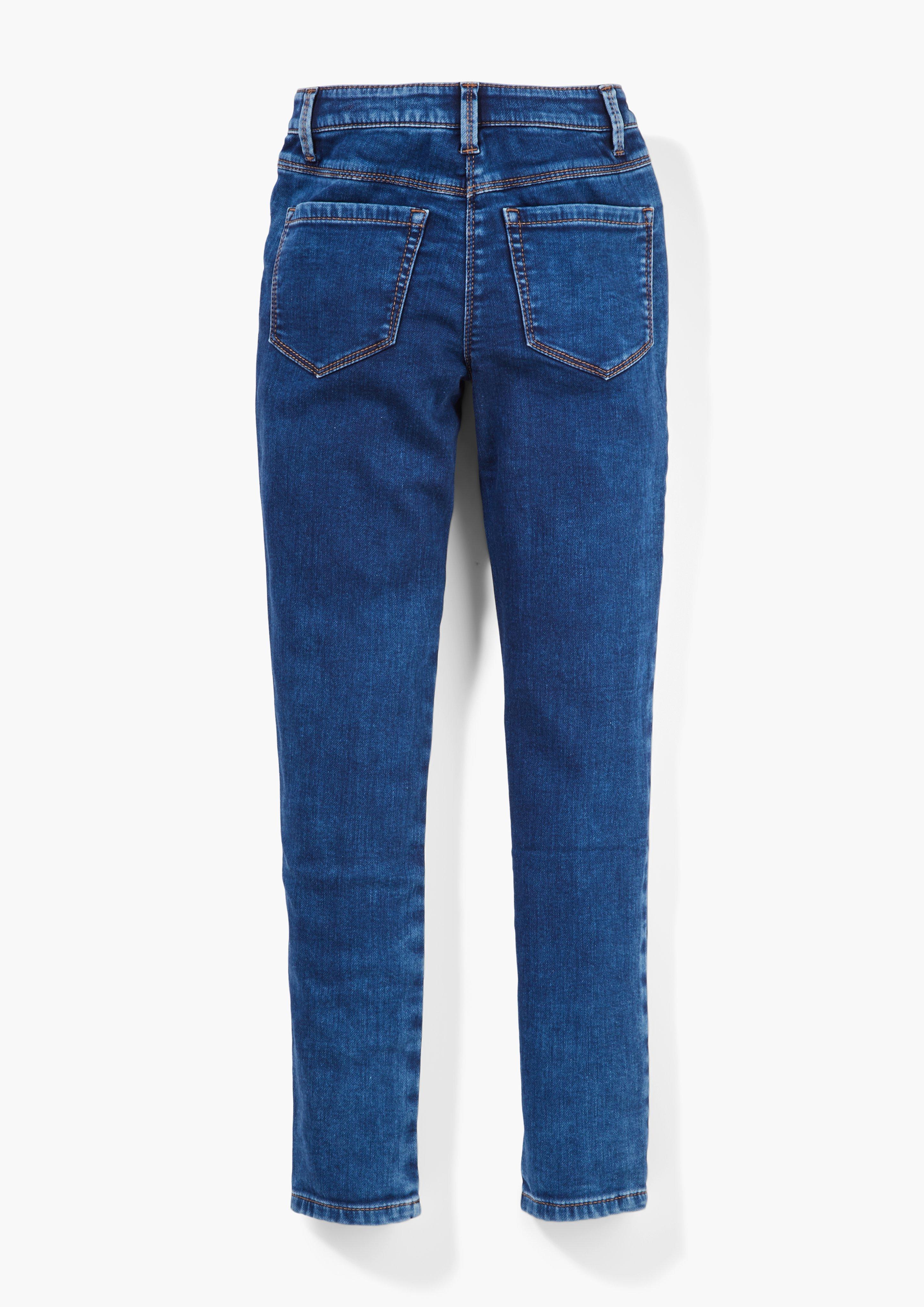 Die perfekte Alltagsjeans ist hier! Die Jeans Suri im Regular Fit mit Slim Leg sitzt einfach traumhaft. Mit mittelhohem Bund und der praktischen Weitenregulierung innen am Bund passt sie sich deiner Figur optimal an. Der Baumwollstretch-Stoff ist super elastisch und bequem - du fühlst dich darin einfach wohl! Im klassischen 5-Pocket-Design mit Knopf und Reißverschluss, dazu coole Destroyes-Effekte für den lässigen Look. Ob für die Arbeit, Uni oder Freizeit - diese Jeans ist dein neuer Liebling! In Größe 152/SLIM und in blauer Waschung sieht sie einfach zu allem gut aus. Einfach anziehen und gut aussehen - ohne groß nachzudenken. Perfekt für alle, die Style und Komfort lieben!