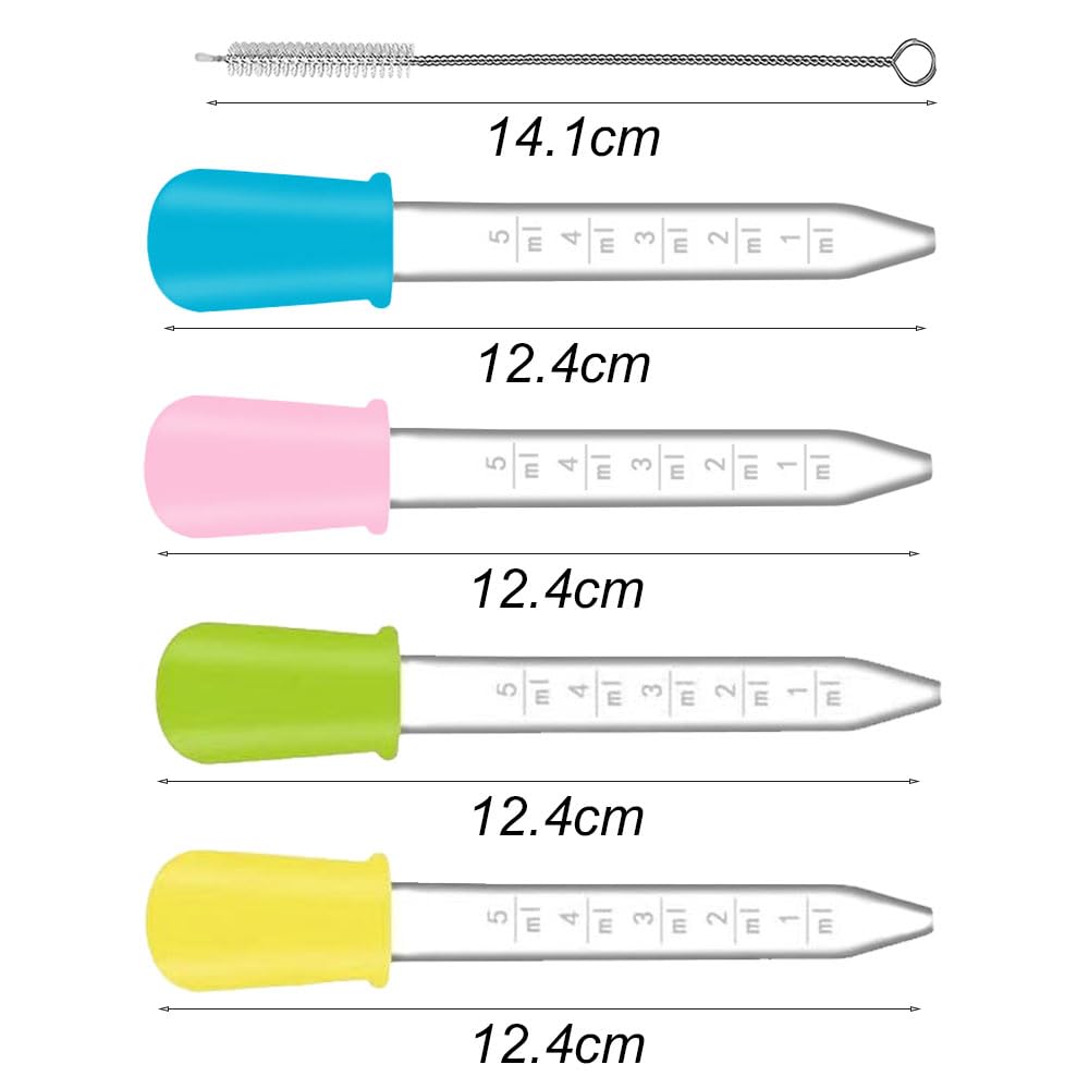 Super praktisches Pipetten-Set für alle möglichen Projekte! Du bekommst 8 bunte Tropfer in himmelblau, gelb, rosa, dunkelblau, orange, grün, lila und rot - plus eine Reinigungsbürste dazu. Jede Pipette fasst 5ml und hat eine klare Skala von 1-5ml, damit du genau dosieren kannst. Total einfach zu reinigen: Der Gummiteil ist abnehmbar und du kannst sie sogar in die Spülmaschine stecken. Aus BPA-freiem Silikon in Lebensmittelqualität - also absolut unbedenklich für Süßigkeiten, Gummibärchen oder Bastelprojekte. Perfekt zum Befüllen von Bonbonformen, für Nährstoffe in der Pflanzenzucht oder zur Haustierfütterung. Mit 12cm Länge gut in der Hand liegend. Macht nicht nur Spaß, sondern schont auch die Umwelt, weil du Einwegpipetten vermeidest. Ein echter Allrounder für Küche, Hobby und Labor!