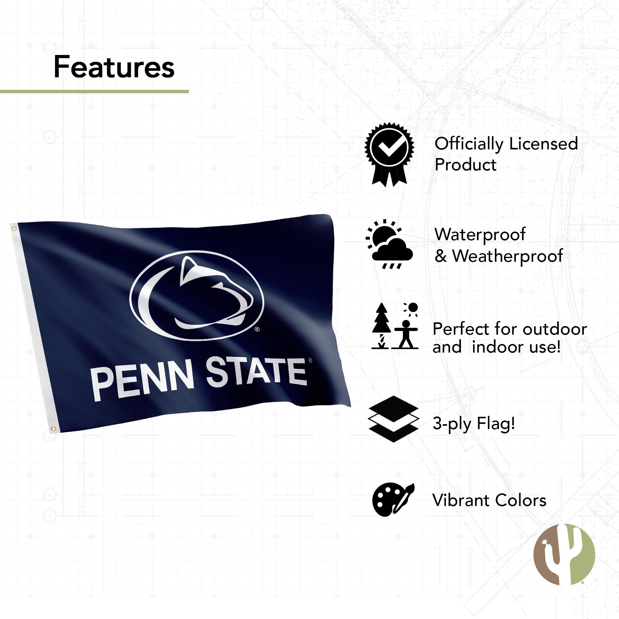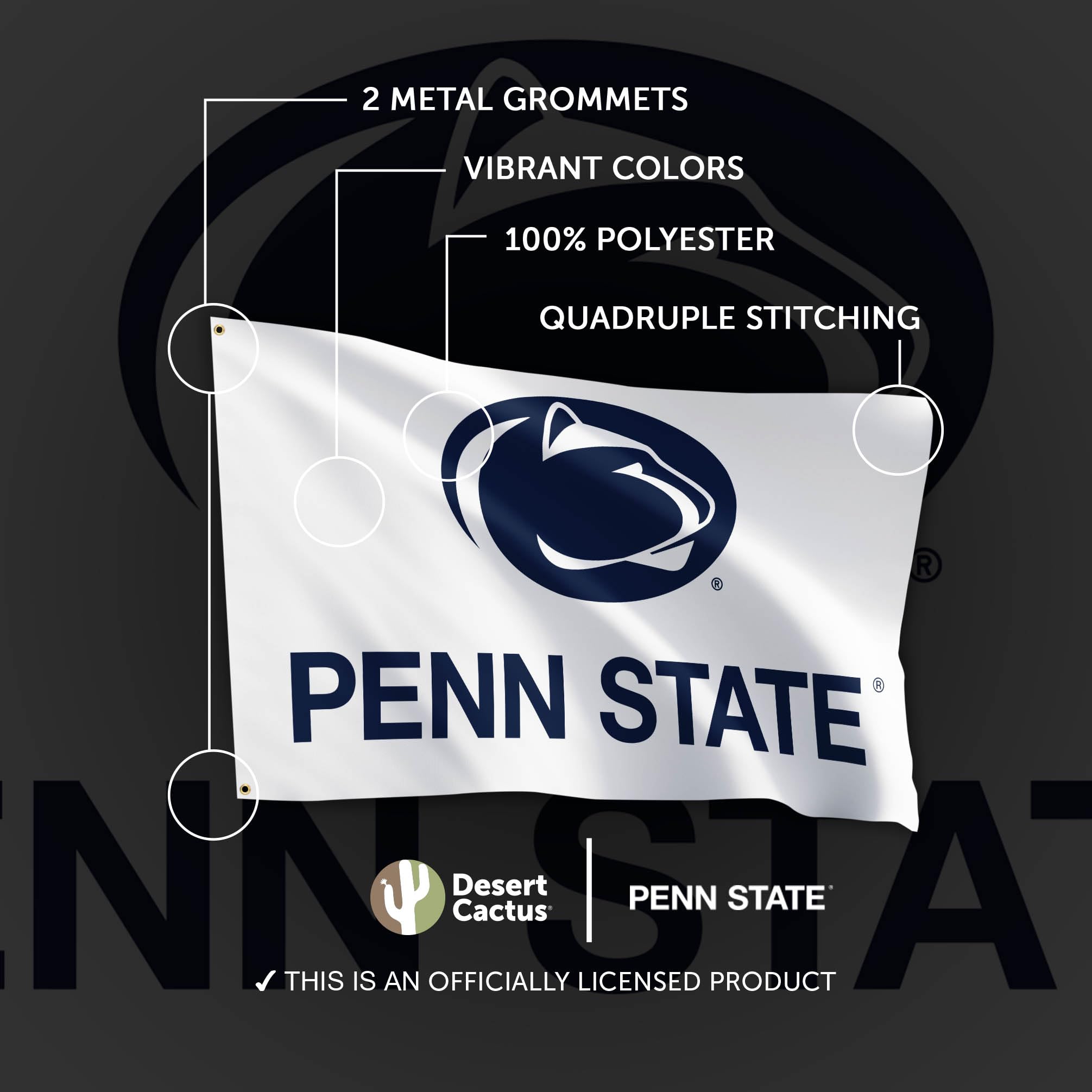 Zeig deinen Penn State Pride! Diese offizielle Nittany Lions Flagge ist perfekt, um deine Liebe zur Universität zu zeigen. Egal ob im Wohnzimmer, im Garten oder im Stadion - damit bist du immer richtig angezogen.\n\nWas die Flagge besonders macht:\n• 100% Polyester - hält auch bei Wind und Wetter\n• Doppelseitig bedruckt - von beiden Seiten perfekt lesbar\n• 2 Metallösen - einfach aufzuhängen\n• Vierfache Nähte - reißt nicht so schnell\n\nMaße: 7,6 x 12,7 cm - ideal für den Schreibtisch, das Regal oder als Deko im Auto. Nicht zu groß, nicht zu klein.\n\nDesert Cactus ist übrigens offizieller Lizenzpartner - das heißt, die Universität kriegt was von deinem Kauf ab. Du unterstützt also deine Alma Mater!\n\nSuper als Geschenk für:\n• Absolventen\n• Aktive Studenten\n• Fans und Alumni\n• Sammler\n\nOb zum Football-Spiel, zur Graduation oder einfach nur so - mit dieser Flagge zeigst du, wo dein Herz schlägt. For the Glory!