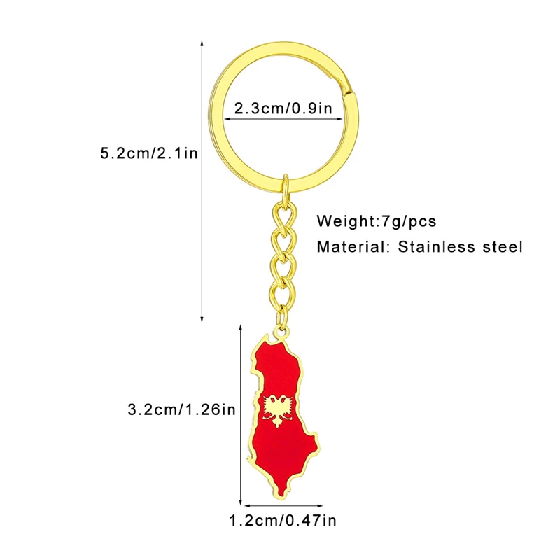 Zeige deine Verbundenheit mit Albanien mit diesem stylischen Schlüsselbund! Das detailreiche Design zeigt die Landkarte von Albanien inklusive Flagge - ein echter Hingucker für jeden Schlüsselbund. Aus hochwertigem Titanstahl gefertigt, ist der Anhänger besonders langlebig und verblasst nicht. Mit ca. 5,2cm Kettenlänge und 3,2x1,2cm Anhänger ist er die perfekte Größe für täglichen Gebrauch. Erhältlich in Gold oder Silber - je nach Geschmack. Nicht nur praktisch für Schlüssel, sondern auch ein tolles Accessoire für Handtaschen, Rucksäcke oder als Geschenk für albanische Freunde und Familie. Das ethnische Design unterstreicht deine kulturelle Identität und ist immer ein Gesprächsanlass. Perfekt als kleines Mitbringsel, für Geburtstage oder einfach als Zeichen der Verbundenheit mit der Heimat. Ein hochwertiges Accessoire, das lange Freude bereitet und deine Schlüssel stylisch organisiert hält!