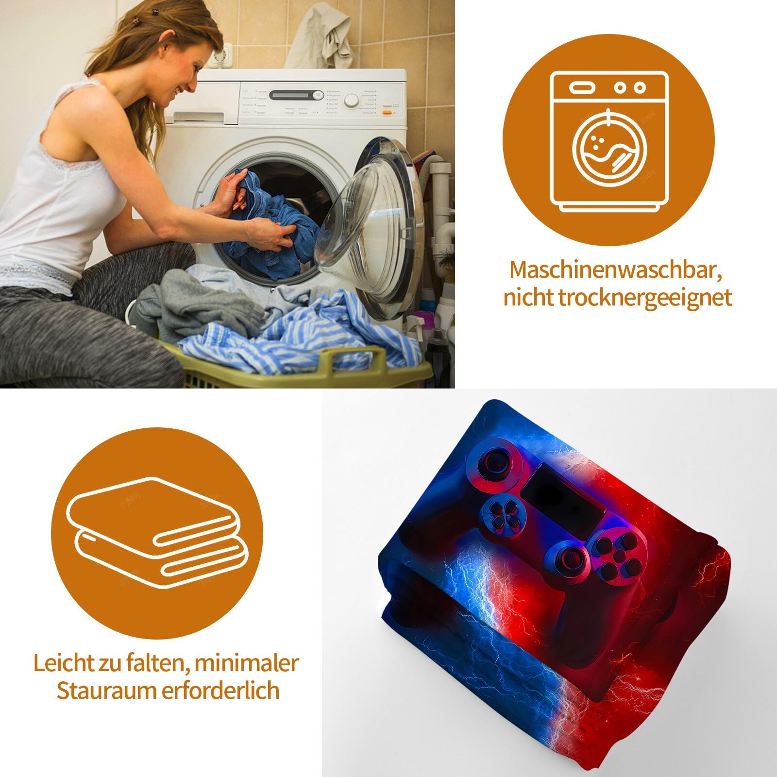 Wow, was für eine coole Decke für alle Gamer da draußen! Die Gamepad Kuscheldecke ist mit nem echten Controller-Muster bedruckt - sieht einfach mega aus im Jugendzimmer oder Gaming-Bereich. Mit 150x200cm ist sie groß genug um dich komplett einzumummeln während du zockst oder Filme schaust. Eine Seite ist aus superweichem Flanell - richtig kuschelig und warm. Die andere Seite ist auch total angenehm. Die Farben sind schön kräftig und verblassen nicht so schnell, auch nach mehrmaligem Waschen. Perfekt fürs Wohnzimmer auf der Couch, im Büro am Schreibtisch oder einfach zum Chillen auf dem Bett. Macht auch ein super Geschenk für Geburtstage, Weihnachten oder einfach so für Gaming-Fans. Und praktisch ist sie auch: Maschinenwaschbar bei 30 Grad, also keine komplizierte Pflege. Leicht und atmungsaktiv - du schwitzt dich nicht tot darunter. Egal ob Teenager oder erwachsener Gamer - mit dieser Decke zeigst du deine Leidenschaft für Games und hast dabei noch was richtig Gemütliches zum Einkuscheln. Sieht nicht nur cool aus, sondern ist auch noch mega praktisch!