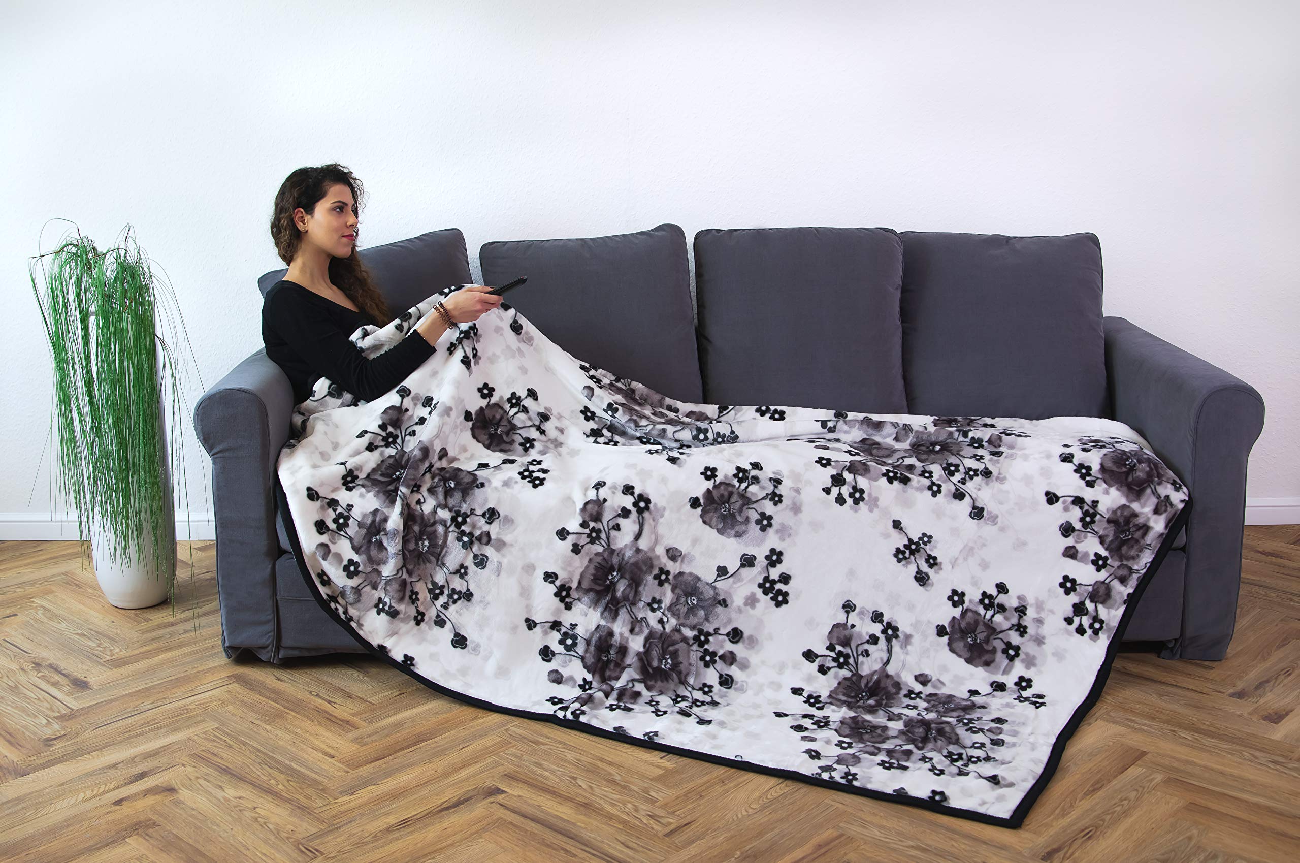 HAFIX Kuscheldecke 160x220cm - Flanell-Fleece Decke Braune Blume