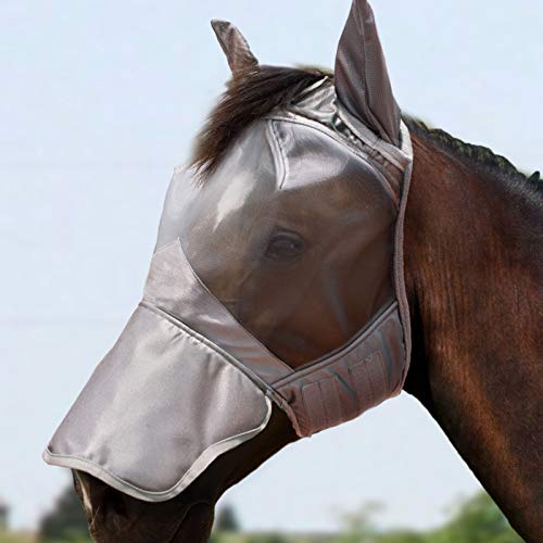 Oh, diese Fliegenmaske für Pferde ist ja mal richtig durchdacht! In grau sieht sie nicht nur schick aus, sondern bietet auch maximalen Komfort für dein Pferd. Das feine Mesh-Gewebe ist atmungsaktiv und schützt zuverlässig vor lästigen Insekten und schädlichen UV-Strahlen. Die großen Augenaussparungen geben deinem Pferd freie Sicht, ohne zu scheuern. Super elastisch und mit weichen Kanten - kann den ganzen Tag getragen werden ohne Druckstellen. Perfekt für die Weide, beim Training oder im Stall. Das Material ist robust und langlebig, verhindert Überhitzung und ist leicht zu reinigen. Dein Pferd ist bestens geschützt und sieht dabei noch richtig stylisch aus! Ein Muss für jeden verantwortungsvollen Pferdebesitzer.