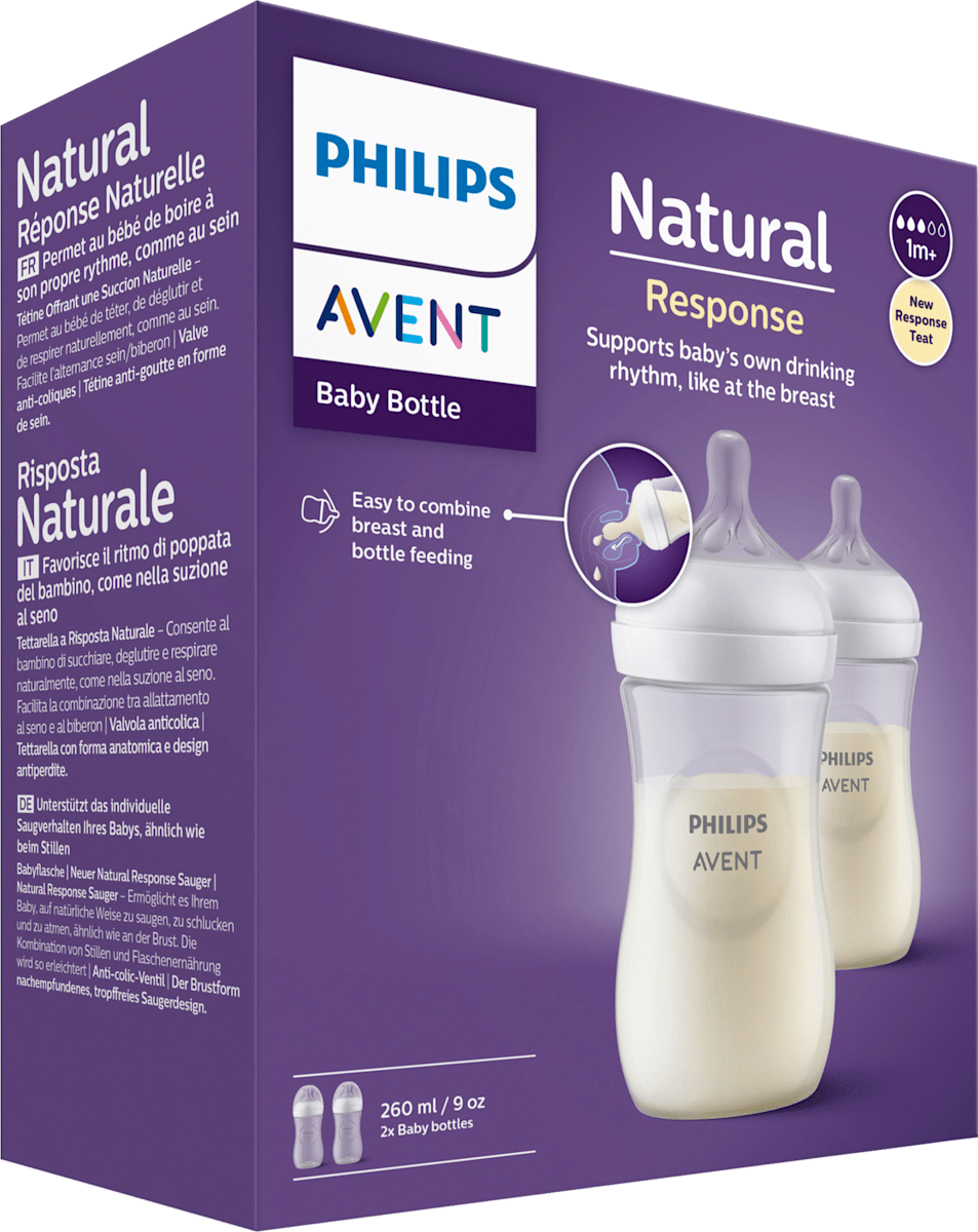 So einfach kann der Übergang zwischen Stillen und Flasche sein! Die Philips AVENT Natural Response Sauger Flow 3 sind speziell für Babys ab 1 Monat entwickelt. Das besondere Design ermöglicht es deinem Baby, den Milchrhythmus selbst zu kontrollieren - genau wie beim Stillen. Nur wenn dein Baby aktiv trinkt, gibt der Sauger Milch ab. Das Anti-Tropf-Design verhindert lästiges Auslaufen. Das integrierte Anti-Colic Ventil reduziert Koliken, indem es Luft vom Babys Bauch wegleitet. In der Packung sind 4 Sauger enthalten, perfekt zum Wechseln und immer hygienisch frisch. Einfach auf passende AVENT Flaschen aufsetzen und dein Baby genießt eine natürliche Trinkerfahrung. So wird jede Flaschenmahlzeit zum entspannten Erlebnis für euch beide!
