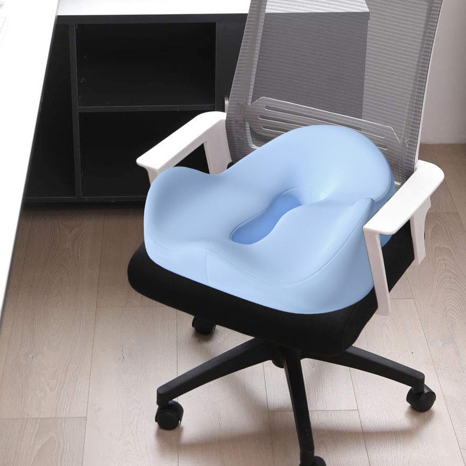 Endlich bequem sitzen - egal ob im Auto oder im Büro! Dieses Ruwshuuk Sitzkissen mit hochdichtem Memory Foam Kern entlastet gezielt Steißbein und Lendenwirbel. Die rutschfeste Unterseite mit Körnchenstruktur hält sicher auf jedem Sitz. Besonders praktisch: Die integrierte Lordosenstütze sorgt für eine gesunde Sitzhaltung. Aus hautfreundlicher südkoreanischer Seide gefertigt, ist es atmungsaktiv und für alle Jahreszeiten geeignet. Erhältlich in Schwarz und Marineblau. Perfekt für Vielfahrer, Büroangestellte oder alle, die lange sitzen müssen. Einfach auf den Sitz legen und Komfort genießen!