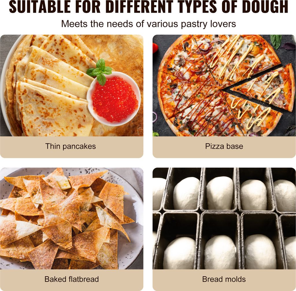 Macht Pizzaböden wie ein Profi! Die VEVOR elektrische Pizzateigpresse formt bis zu 260 Teigstücke pro Stunde - perfekt für Pizzerien, Bäckereien oder Cafés. Mit 390 Watt Leistung und aus robustem Edelstahl, ist sie ein echter Arbeitstier. Die Dicke ist einstellbar von 1 bis 5,5 mm, für dünne oder dickere Böden. Größen von 7,6 bis 40,6 cm sind möglich. Das Doppelwalzen-Design presst den Teig gleichmäßig, der Metallarm dreht ihn automatisch. Die lebensmittelechten Walzen sind langlebig und leicht zu reinigen. Die transparente Abdeckung schützt vor Staub und Verletzungen. Rutschfeste Füße sorgen für Stabilität. Einfach Teig rein, Knopf drücken und in 15 Sekunden hast du einen perfekten Pizzaboden. So macht Pizza machen Spaß!