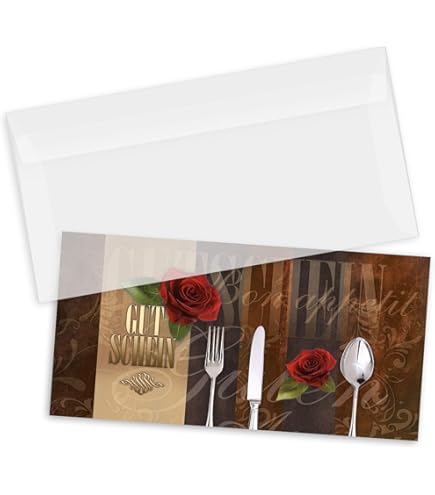 Perfekt für dein Restaurant, Hotel oder Geschäft! Diese 100 edlen Gutschein-Formulare im DIN-Lang Format (210x105mm) sind super praktisch. Einfach selbst ausfüllen - mit vorgedruckten Feldern für Firmenstempel und Wert. Aus dickem 250g/m² Karton, also richtig hochwertig. Die glänzende Oberfläche schützt vor Schmutz, die matte Rückseite ist perfekt zum Beschriften. Mit passenden Aufklebern für deine Theke. Brillante Farben und tolles Design - deine Kunden werden begeistert sein! Mach dein Geschäft noch professioneller.
