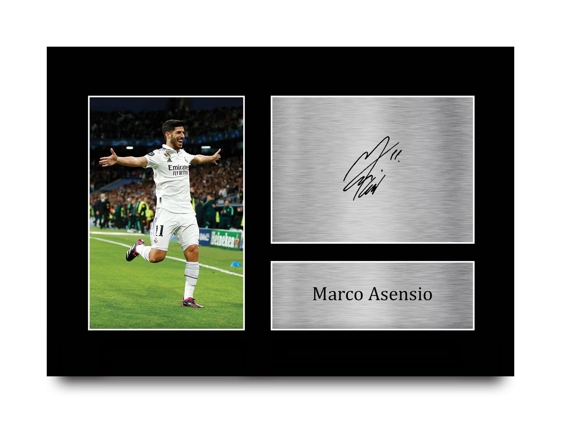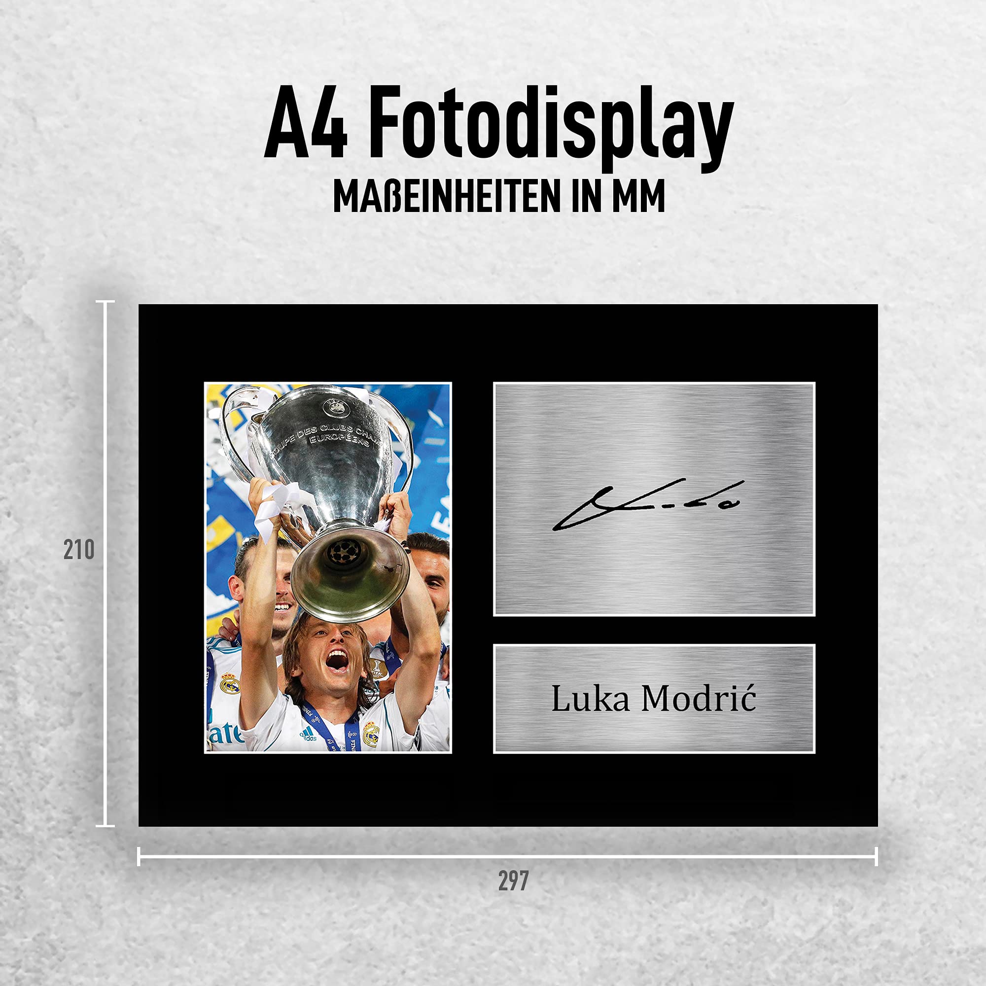 Das perfekte Geschenk für jeden Casemiro-Fan! Dieses A4-signierte Foto des Fußballstars kommt auf einem schlanken schwarzen Display und sieht aus wie ein echtes Autogramm. Professionell gedruckt auf hochwertigem 1400-Mikron-Karton mit silbernem Namensschild im Metallic-Look. Einfach auspacken und aufhängen - fertig ist die Fan-Ecke! Perfekt für Geburtstage, Weihnachten oder als Überraschung für eingefleischte Fußball-Fans. Sieht täuschend echt aus, ohne die hohen Kosten eines Original-Autogramms. Ein Muss für jede Sammlung!