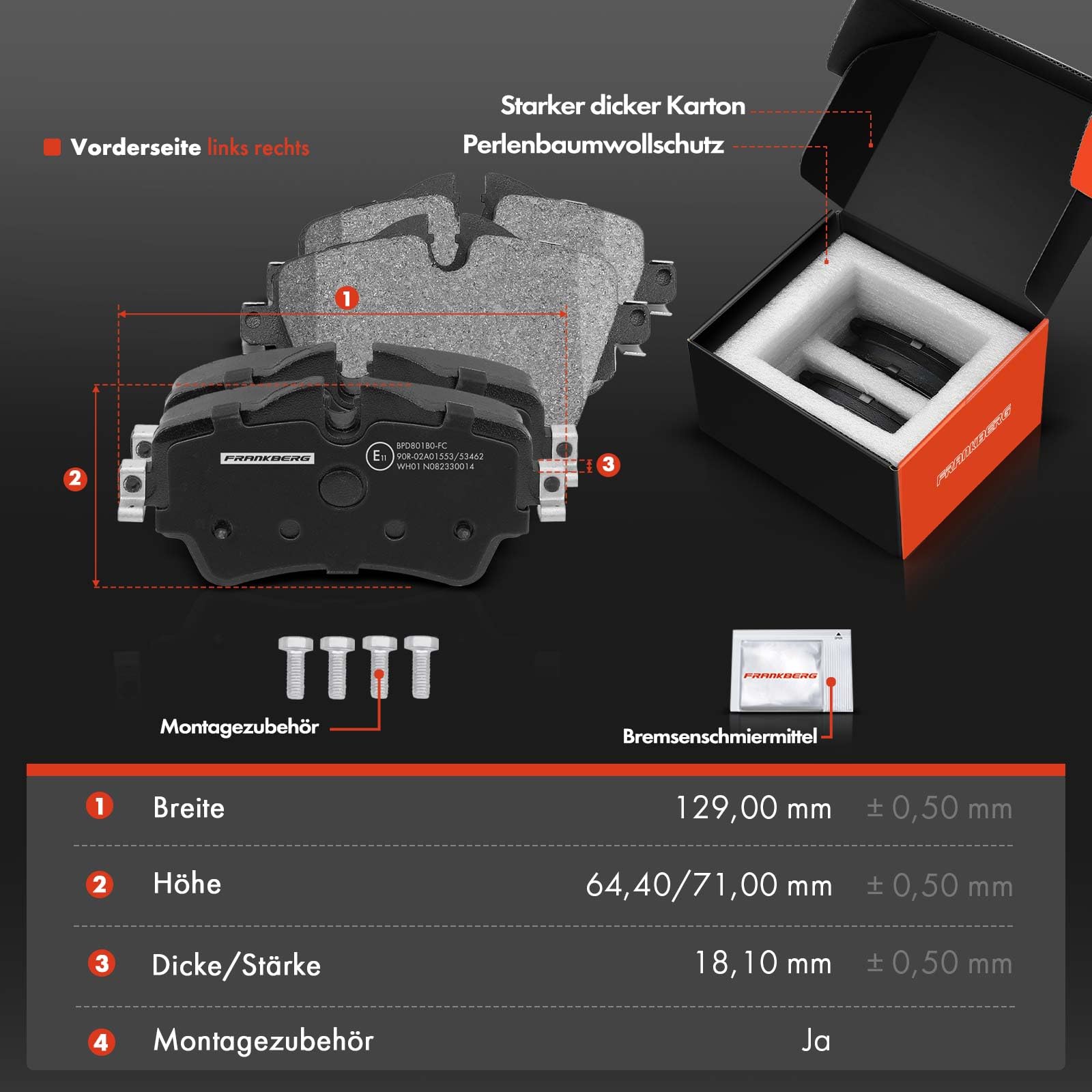 Sicherheit geht vor! Dieses komplette Bremsenset von Frankberg sorgt für zuverlässiges Bremsverhalten bei deinem BMW. Enthält 2 belüftete Bremsscheiben und 4 Bremsbeläge für die Vorderachse. Passend für 2er Active Tourer F45 (216d, 218d, 218i) 2013-2021 und 2er Gran Tourer F46 (214d, 216d, 216i) 2014-2024. Technische Daten: Bremsscheiben Außendurchmesser 294mm, Lochkreis 112mm, 5 Loch; Bremsbeläge von Lucas, Höhe 64,4-71mm. Inklusive Montageschrauben und Bremsenreiniger für die fachgerechte Installation. Ein qualitativ hochwertiger Ersatz, der OEM-Standards entspricht. Wichtiger Hinweis: Vor dem Einbau die Kompatibilität mit deinem Fahrzeug genau prüfen!
