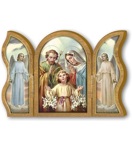 Wunderschönes Triptychon von Fratelli Bonella - ein traditionelles Kunstwerk aus Italien! Darstellung der Heiligen Familie - perfekt für die Weihnachtszeit oder als ständige religiöse Inspiration. Aus 3mm MDF Holz - stabil und hochwertig verarbeitet. Mit prachtvollen goldenen Details und Prägedekor - sieht aus wie ein antikes Kunstwerk. Nur 6x9cm groß - kompakt aber voller Details, passt in jede Ecke. Beidseitig verziert - kann von allen Seiten betrachtet werden. Mit goldenen Metallscharnieren - lässt sich elegant öffnen und schließen. Seit 1931 in Italien hergestellt - Qualität und Handwerkskunst die man sieht. Perfekt für die Reise oder als Deko zu Hause - bringt spirituelle Atmosphäre in jeden Raum. Ein zeitloses Stück das Generationen überdauert - mehr als nur Deko. Einfach aufstellen oder aufhängen - sofortiger Hingucker. Ideal als Geschenk für besondere Anlässe - wird sicher geschätzt. Ein Stück italienische Handwerkskunst für dein Zuhause - einfach bezaubernd!