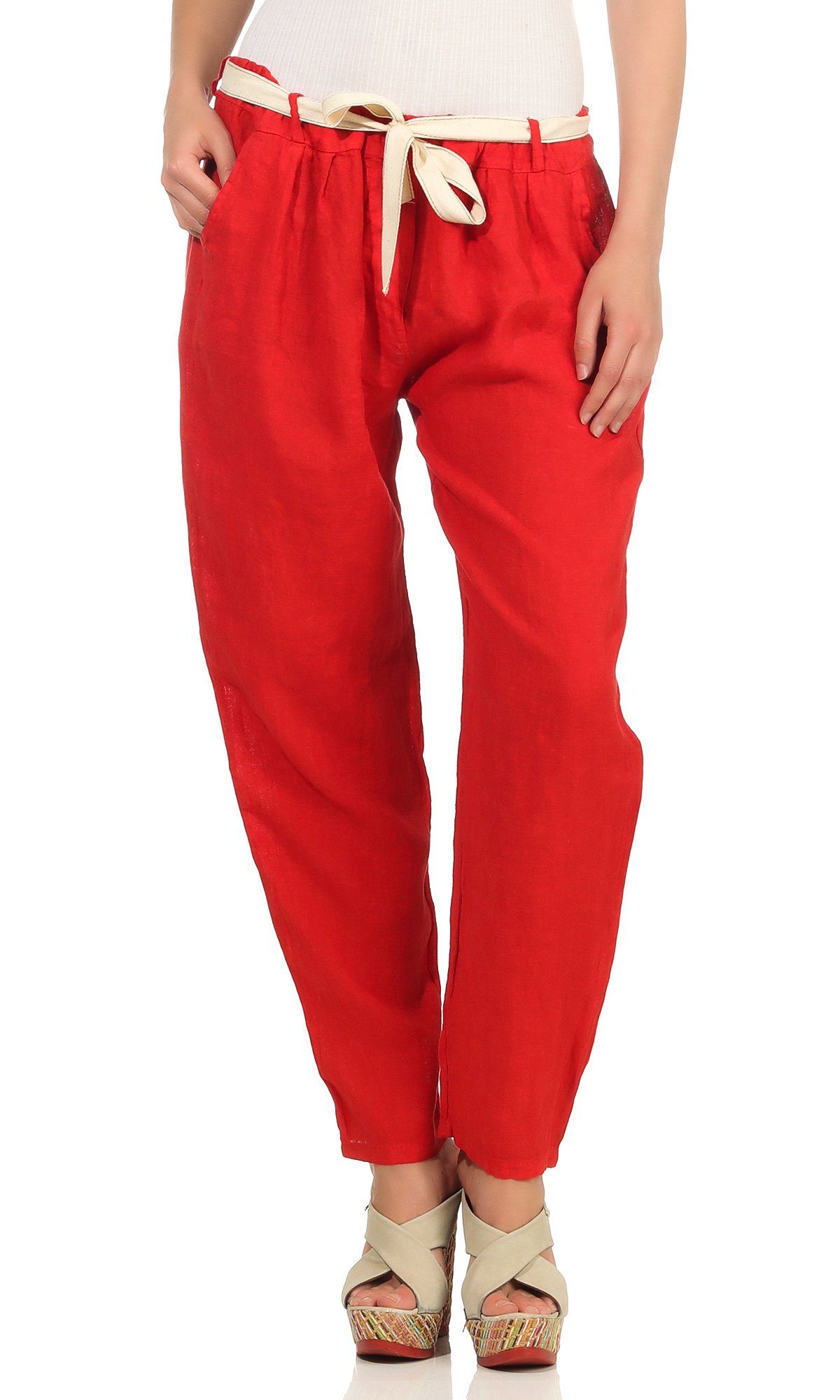 Wow, diese Leinenhose ist ja mal perfekt für den Sommer! Aus einer Mischung von Baumwolle und Leinen ist sie super leicht und luftig. Der elastische Bund mit Kordelzug sitzt mega bequem und passt sich jeder Figur an.