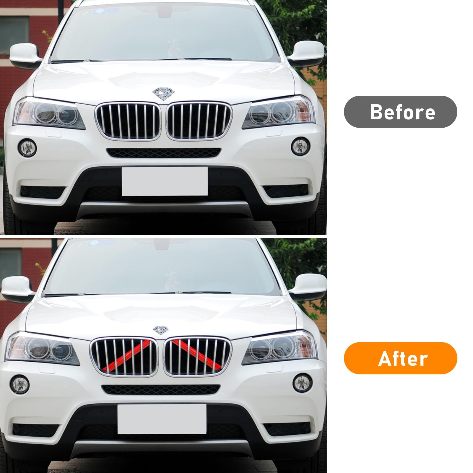 Verpasse deinem BMW X3 F25 (2011-2013) den letzten Schliff! Diese 3 Frontgrill-Streifen in Blau, Rot oder Hellblau machen deinen Kühlergrill zum echten Hingucker. Aus hochwertigem ABS-Material - korrosionsbeständig, hitzebeständig und extrem langlebig. Einfache Snap-Installation ohne komplizierte Demontage des originalen Grills. Die automatische Vierpunkt-Befestigung sorgt für perfekten Halt. Verleiht deinem BMW einen sportlichen Look und macht ihn einzigartig. Ein kleines Detail mit großer Wirkung für alle BMW-Fans, die ihr Auto individualisieren wollen!