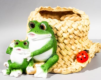 Wie süss ist denn dieser kleine Frosch? Diese bezaubernde Harz-Statue bringt Leben in deinen Garten oder auf den Balkon! Mit 6x6x13cm Grösse ist er der perfekte Begleiter für deine Blumentöpfe. Der grüne Frosch hält lässig ein Glas Rotwein (oder Orangensaft!) in der Hand - einfach urkomisch! Aus hochwertigem Kunstharz gefertigt, das wetterfest, wasserdicht und bruchfest ist. Für innen und aussen geeignet. Schmieg sich perfekt an den Rand deiner Pflanzgefässe und schafft so charmante Gartenszenen. Auch super für Gartenteiche, Brunnen, Aquarien oder als Badewannen-Deko. Ein ideales Geschenk für Gartenliebhaber - bringt garantiert jeden zum Lächeln! Mach deinen Garten zu einem persönlichen Paradies mit diesem verspielten Frosch.