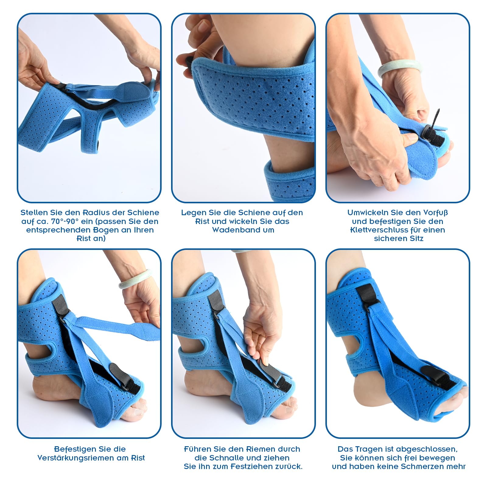 Endlich schmerzfrei schlafen! Diese Plantar Fasciitis Nachtschiene hält deinen Fuß in der optimalen 90-Grad-Position und dehnt sanft die Plantarfaszie. Mit 3 verstellbaren Gurten für perfekten Sitz, atmungsaktivem Material und elastischer Aluminiumstange. Hilft bei Fersenschmerzen, Fersensporn und Achillessehnenentzündung. Einfach anzulegen und bequem zu tragen - wache morgens erholt auf ohne stechende Schmerzen! Auch tagsüber als Kompressionsbandage nutzbar.