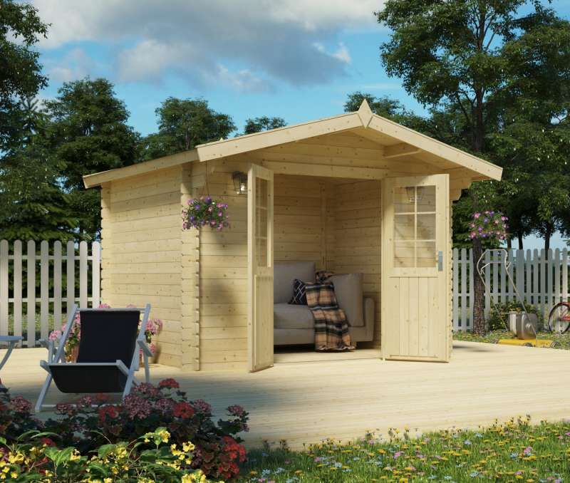 Träumst du von einem eigenen Gartenhaus? Die Valeria-28 macht's wahr! Mit 428x427cm Sockelmaß und 14,67m² Grundfläche bietet sie riesigen Stauraum für Gartengeräte, Möbel oder als gemütlichen Rückzugsort. Die 28mm starken Blockbohlenwände mit 4-fach Eckausfräsung sorgen für absolute Stabilität und sind wind- sowie regendicht. Inklusive 12mm Multiplex-Fußboden und Dach - so kannst du sofort einziehen! Die großzügige Leimholz-Doppeltür (160x173cm) und die echten Glasfenster verleihen dem Haus Charme und Funktionalität. In Grau imprägniert, wetterbeständig und pflegeleicht. Ideal als Geräteschuppen, Gartenlaube, Home-Office oder Werkstatt. Verwirkliche dir deinen Traum vom eigenen Gartenhaus - die Valeria-28 bietet Qualität und Platz pur!