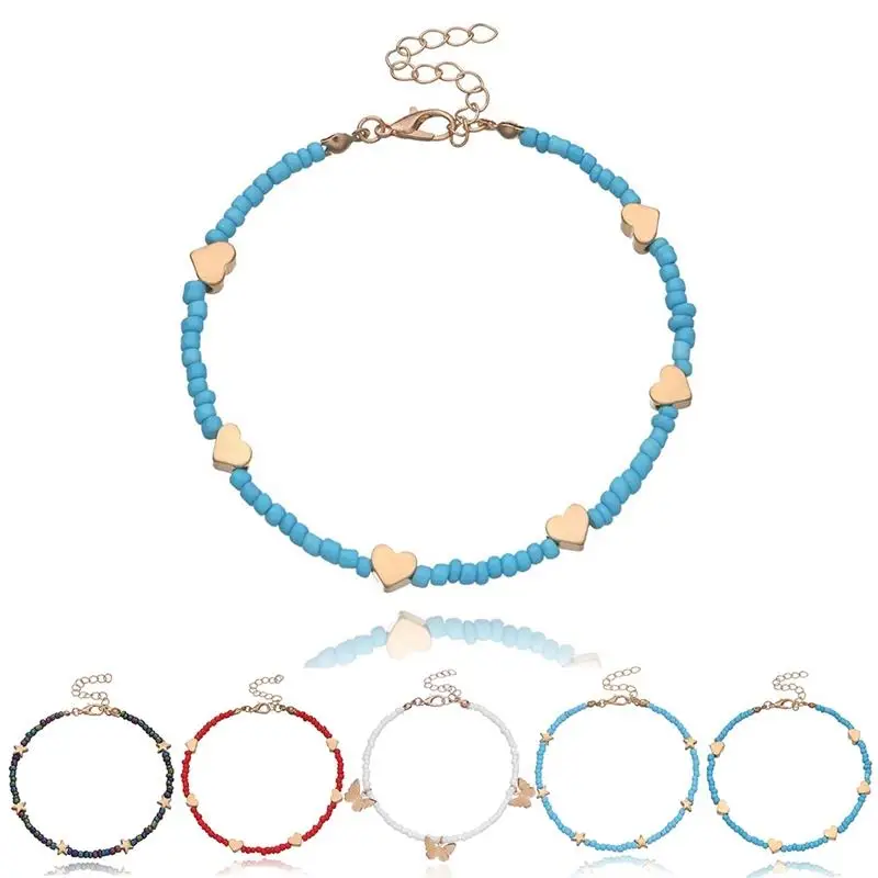 Cubahop Böhmische Fußkettchen Set - 3-teilig Mit Herzen Und Bunten Perlen