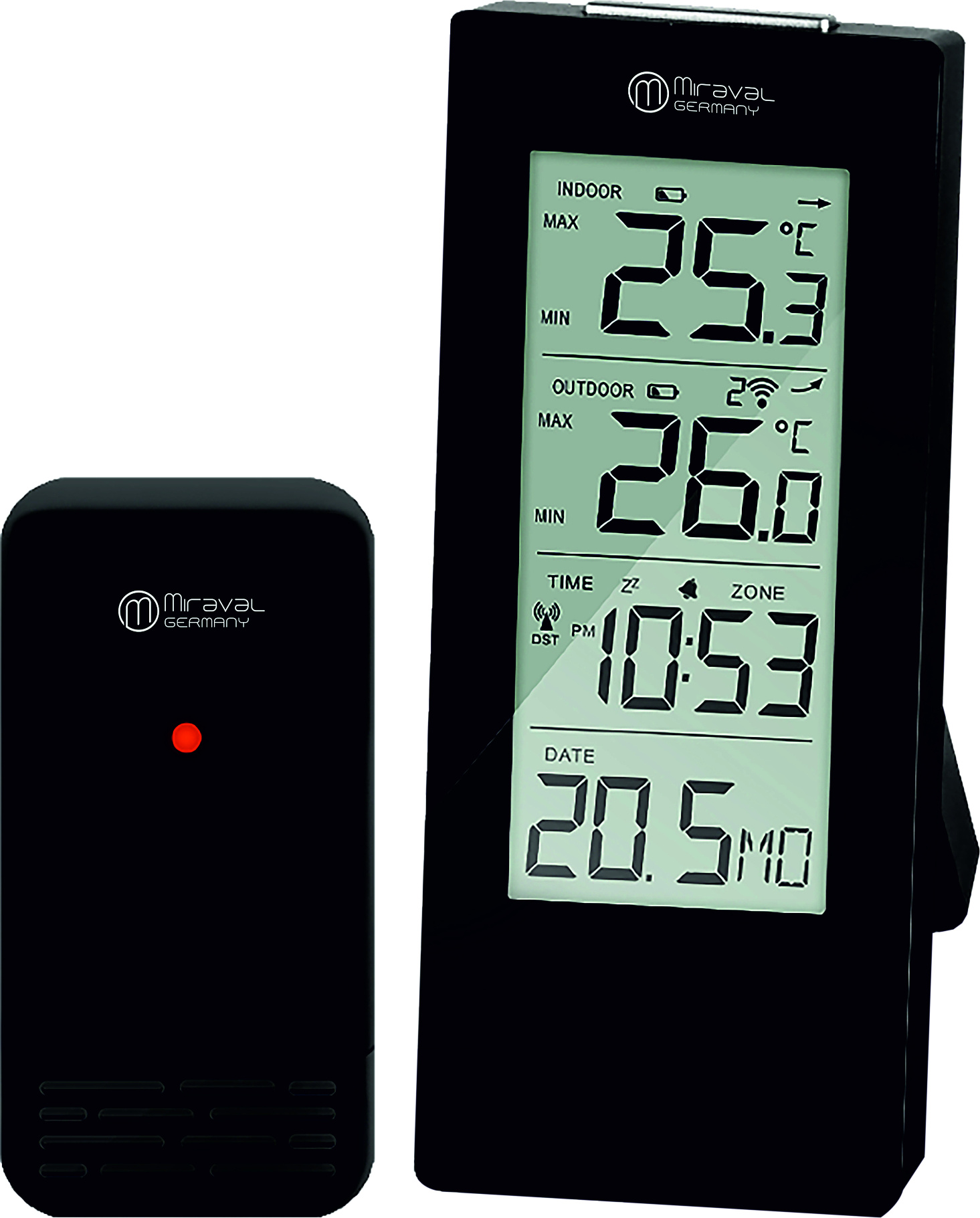 Mit dieser Wetterstation weißt du immer, was draußen los ist - ohne das Haus zu verlassen! Das große LCD-Display zeigt dir alles auf einen Blick: Temperatur von -20 bis +50 Grad, Luftfeuchtigkeit, Wettervorhersage für die nächsten Tage und sogar die Mondphasen! Der Außensensor funkt bis zu 100 Meter weit - also auch wenn der Sensor ganz hinten im Garten steht. Zwei Wecker mit Schlummerfunktion wecken dich sanft, und die Hintergrundbeleuchtung macht das Ablesen nachts einfach. Kann an die Wand oder einfach auf den Tisch. Super praktisch für alle, die genau wissen wollen, ob sie Jacke oder T-Shirt anziehen sollen, oder wann die beste Zeit für Gartenarbeit ist. Einfach aufstellen, Sensor platzieren und schon hast du deine persönliche Wetterzentrale!