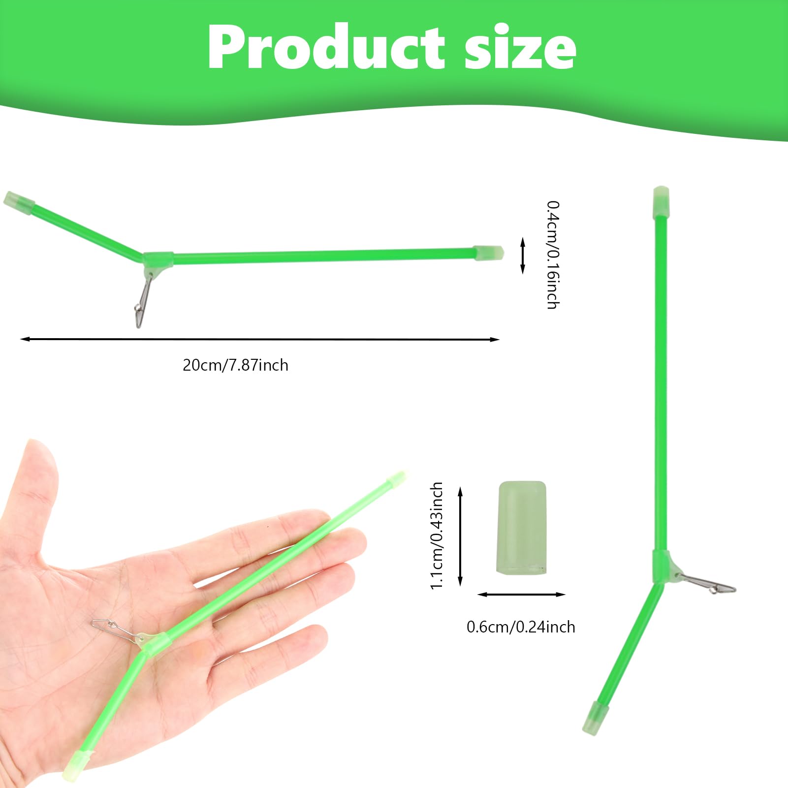 Alles dabei für deinen nächsten Angelausflug! Dieses umfangreiche Set enthält Futterkörbe in verschiedenen Gewichten (10g, 20g, 30g, 40g, 50g, 60g) und 10 Anti-Tangle Booms (5x20 cm + 5x22 cm). Die Futterkörbe sind aus hochwertiger Legierung gefertigt und besonders hart - halten also auch kräftigen Fischen stand. Der gepolsterte Boden sorgt dafür, dass der Köder sicher an Ort und Stelle bleibt. Der Wirbel am Kopf ermöglicht eine flexible Drehung, damit der Köder natürlich wirkt und mehr Fische anlockt. Die Anti-Tangle Booms haben federgespannte Verbindungen für extra Stabilität und reduzieren lästiges Verdrehen der Schnur. Die ausgestellten Enden schonen deine Schnur vor Abrieb. Cooler Zusatzeffekt: Sie leuchten nachts, nachdem sie Licht absorbiert haben - perfekt für nächtliches Angeln! Das Set ist leicht zu transportieren und sowohl für Anfänger als auch Profis geeignet. Egal ob du im Süßwasser oder Meer angeln gehst - mit diesem Set bist du bestens ausgerüstet für einen erfolgreichen Fangtag!