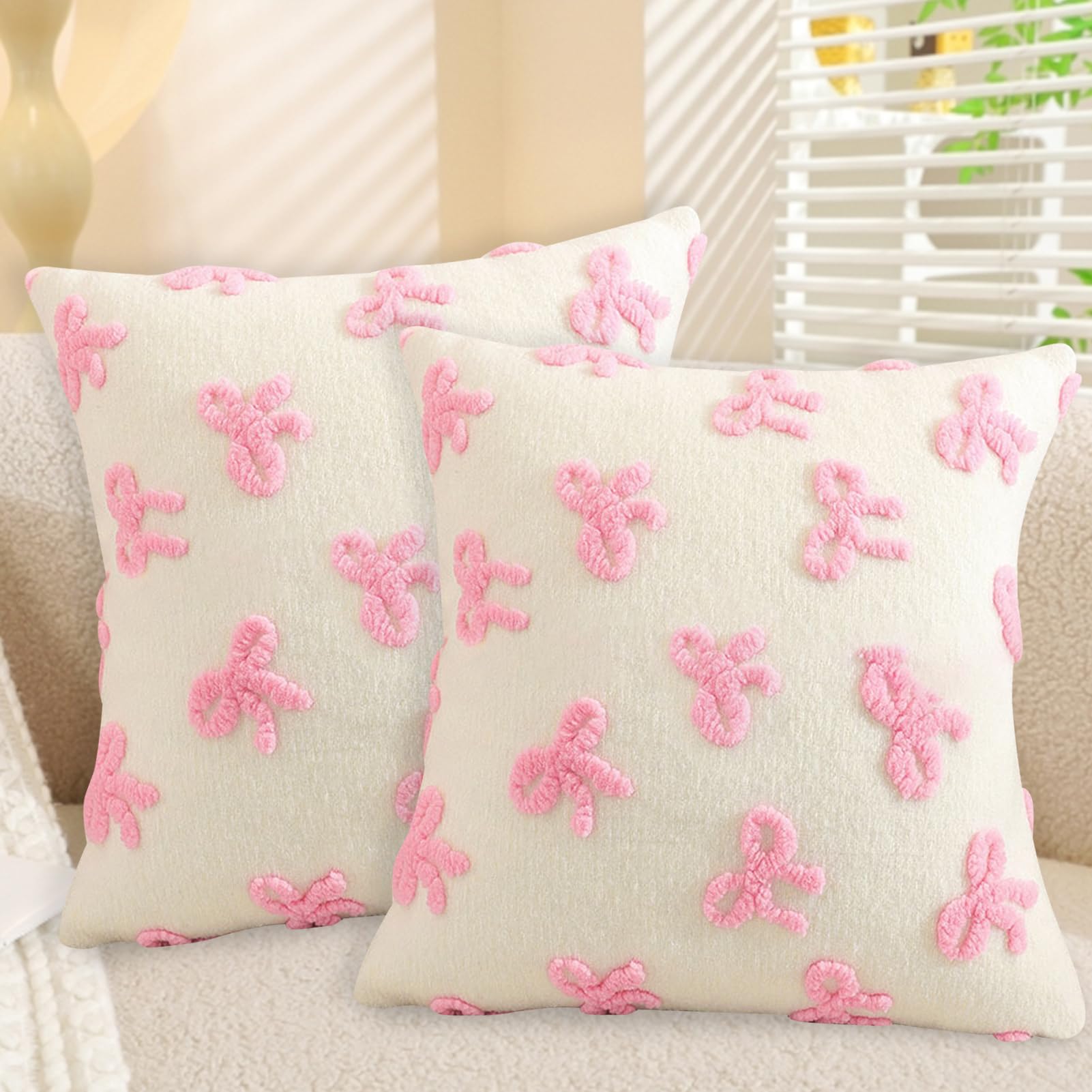 FytStycale Schleifen Kissen Weiß - Dekoratives Plüschkissen Für Sofa & Wohnzimmer