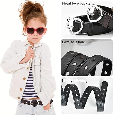 Süßes 2er-Set Gürtel für kleine Modeexpertinnen! Mit den niedlichen Herz-Schnallen werden diese Gürtel schnell zum Lieblingsteil im Kleiderschrank. Aus weichem PU-Material gefertigt, liegen sie angenehm auf der Haut und sind dabei robust und langlebig. Mit 90cm Länge und 2,3cm Breite passen sie sich durch das praktische Verstellsystem perfekt an und begleiten Mädchen durch verschiedene Wachstumsphasen. Ideal für Jeans, Röcke, Kleider und besonders praktisch für Schuluniformen. Die stabilen Metall-Schnallen garantieren einfaches An- und Ausziehen bei perfektem Halt. In trendigen Farben erhältlich, die sich ideal kombinieren lassen - ob für Schule, Spiel oder besondere Anlässe. Ein stylisches Accessoire, das jedem Outfit das gewisse Etwas verleiht!