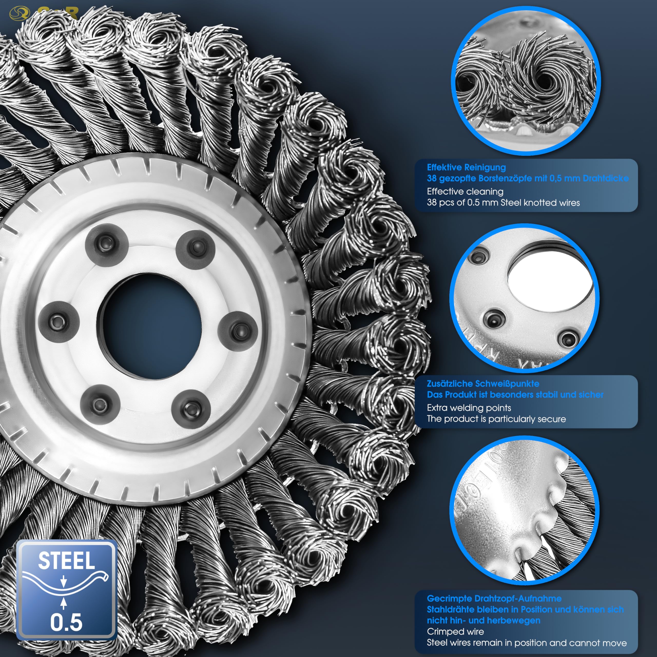 Schluss mit lästigem Unkraut zwischen den Fugen! Diese robuste Wildkrautbürste von GARHWAL macht deinen Garten in null Komma nichts sauber. Mit 150mm Durchmesser und 25,4mm Aufnahme passt sie auf die meisten Motorsensen und Freischneider. Aus stabilem Stahl gefertigt, hält sie auch bei intensivem Einsatz lange durch. Bis zu 10.000 Umdrehungen pro Minute - da hat kein Unkraut eine Chance! Super einfach zu reinigen und immer wieder verwendbar. Passt perfekt für Marken wie Echo, ALKO, Honda, Makita und Kawasaki. 30 Tage Rückgabegarantie - probier's einfach aus! Damit wird die lästige Gartenarbeit zum Kinderspiel. Kein langes Knien mehr, kein mühsames Auszupfen - einfach die Bürste aufstecken und los geht's! Deine Terrasse und Gehwege werden dich nicht wiedererkennen. Endlich mehr Zeit zum Entspannen im schönen, unkrautfreien Garten!