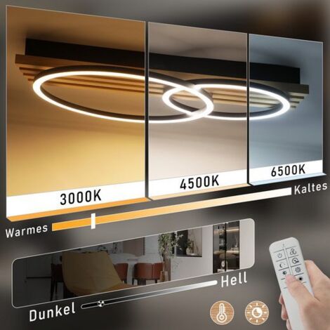 Technische Daten: Durchmesser: 55 cm. Leistung: 36W. Farbtemperatur: 3000K-6500K. Dimmbar: 10-100%. Material: Holz + Eisen. Besonderheiten: Fernbedienung, Memory-Funktion, flimmerfrei. Montage: Decke oder Wand. Ideal für: Wohnzimmer, Schlafzimmer, Küche, Flur. Einfache Installation - inklusive allem was du brauchst!