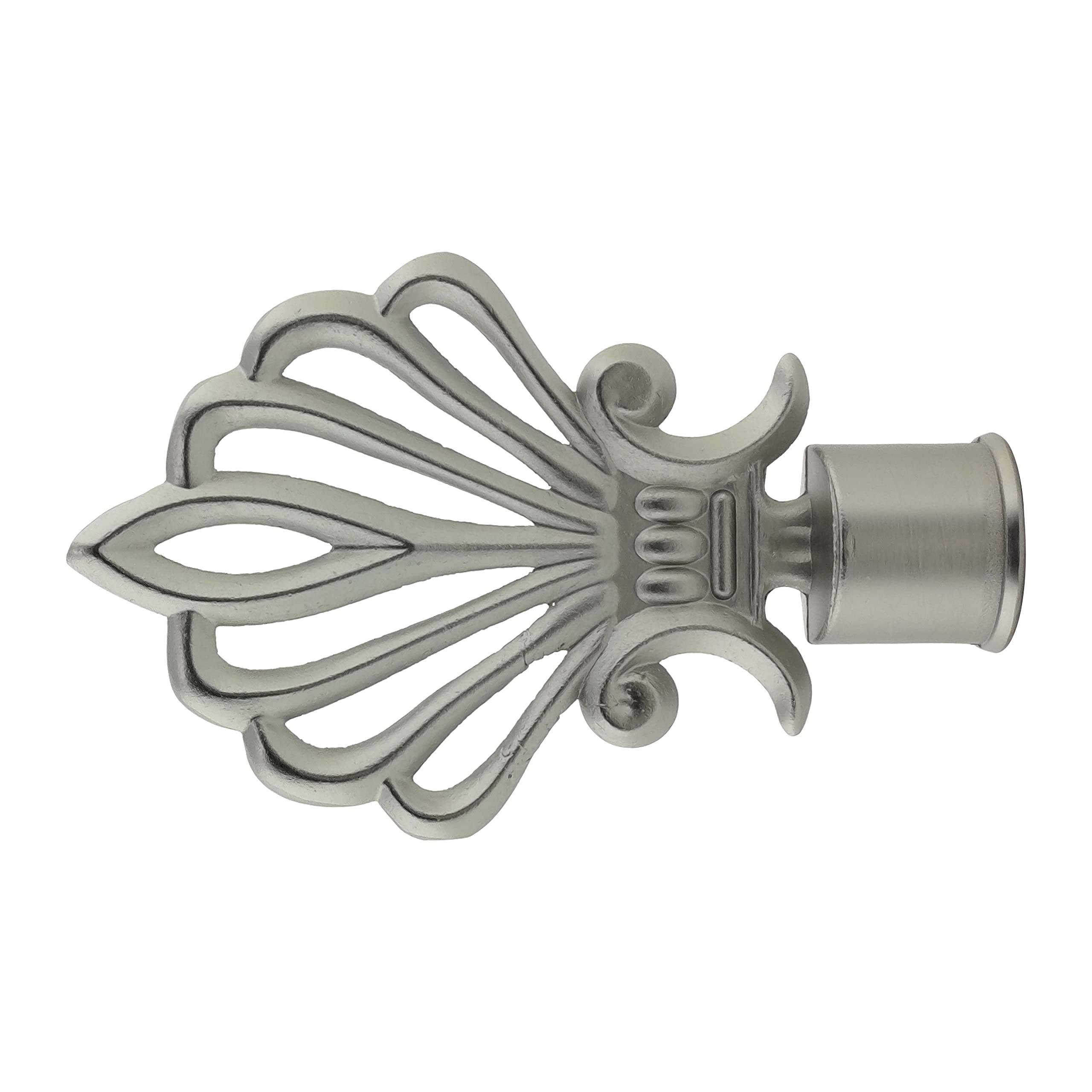 Mach deine Gardinenstange komplett! Diese eleganten Blatt-Endstücke in Satin Nickel verleihen jedem Raum sofort mehr Stil und Persönlichkeit. Einfach an den Enden der Stange befestigen - schon sieht dein Zuhause gleich viel gemütlicher und edler aus. \\n\\nDie Endstücke sind super einfach zu montieren: Einfach mit dem beiliegenden Inbusschlüssel festziehen, fertig! Perfekt für Stangen mit 18-20 mm Durchmesser. Aus robustem Eisen gefertigt, halten sie ewig und sehen dabei immer klasse aus. \\n\\nTipp: Wähl am besten die Farbe, die zu deinem vorhandenen Vorhangzubehör passt. So schaffst du dir ein harmonisches Gesamtbild. Maße: 50x110x24 mm - genau die richtige Größe für den perfekten Abschluss!