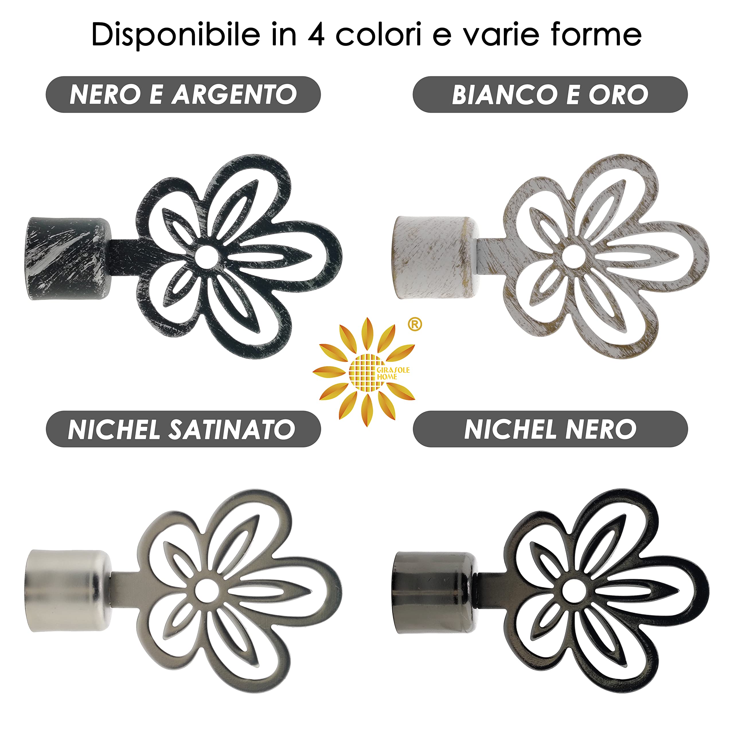 • GIRASOLE HOME Gardinenstangen Endstücke 18-20 Mm - 2er Set Satin Nickel