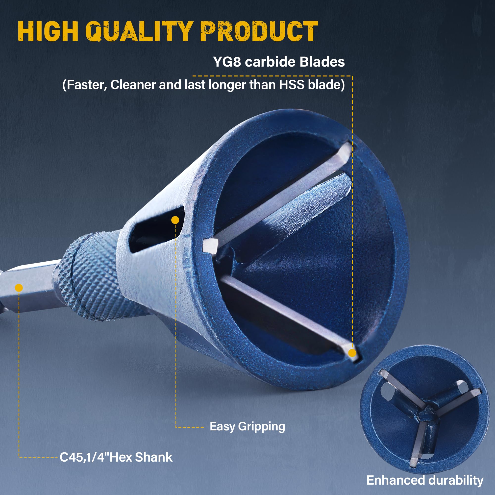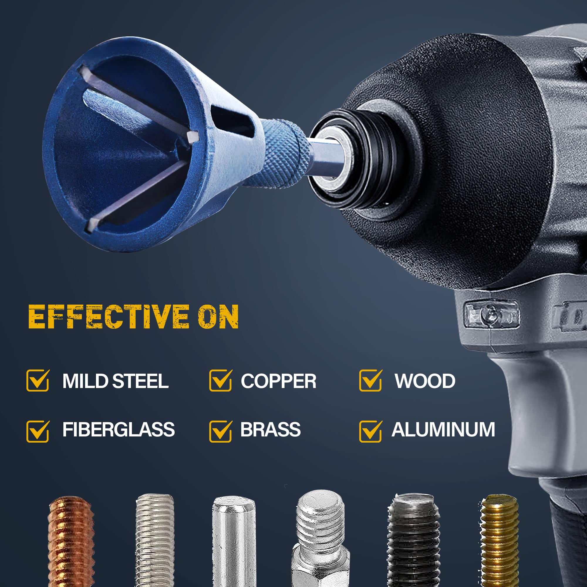 Schluss mit scharfen Kanten! Das GMTOOLS Entgratungswerkzeug macht aus rauen Kanten glatte Perfektion. Mit der robusten YG8 Hartmetallklinge rostfrei und super langlebig. Passt für runde Schäfte von 3-19 mm - ideal für Schrauben, Gewindestangen und mehr. Einfach in die Bohrmaschine einspannen (0-400 U/min), leichten Druck ausüben und schon sind die Grate history! Funktioniert super mit Baustahl, Kupfer, Messing, Holz und Hartplastik. Das Schnellwechsel-Design spart Zeit und Nerven. Und falls doch mal was nicht passt: 30 Tage Geld-zurück-Garantie! Für alle, die Wert auf perfekte Ergebnisse legen - ob Heimwerker oder Profi.