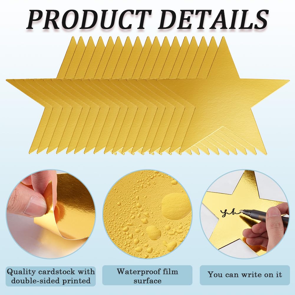 Kreative Dekoration für jeden Anlass! Diese 60 goldenen Sternausschnitte (ca. 15cm) sind doppelseitig bedruckt und werden inklusive Aufklebern geliefert. Einfach auf der Rückseite befestigen und überall anbringen. Aus hellem, langlebigem Papier gefertigt - perfekt für Geburtstage, Hochzeiten, Klassenzimmer oder Partys. Ideal für Bastelprojekte, Pinnwände und Wanddekoration. Mit diesen funkelnden Sternen verleihst du jedem Raum sofort eine festliche Atmosphäre!