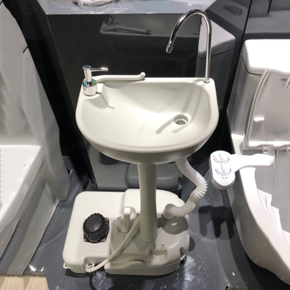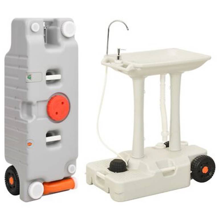 Sauberkeit unterwegs! Diese tragbare Waschstation mit 17 Liter Wassertank macht Camping- und Angelausflüge komfortabler. Mit praktischer Fußpumpe (180 ml pro Druck), schwenkbarem Wasserhahn und Abflussschlauch. Robuste Räder und Griff zum einfachen Transport. Aus wetterfestem HDPE-Material, 51x33x102 cm groß. Inklusive Seifenspender, Handtuchhalter und Schmutzfänger. Mit Erdungsösen für stabilen Stand im Freien. Perfekt für Camping, Garten oder Baustelle - Hygiene wo immer du sie brauchst!