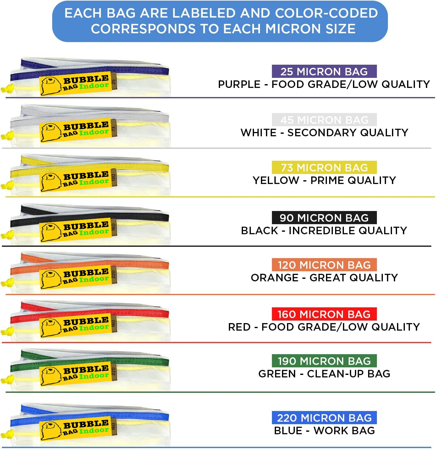 Professionelle Extraktion leicht gemacht! Dieses 5-teilige Bubble Bags Set ist perfekt für die Herstellung von ätherischen Ölen und Kräuterextrakten. Jeder Beutel ist farbcodiert für einfache Identifikation: Lila (25µ), Gelb (73µ), Orange (120µ), Rot (160µ), Blau (220µ). Aus hochwertigem, wasserdichtem Nylon mit lebensmittelechtem Monofilnetz gefertigt. Das Vollnetz-Design ermöglicht eine effizientere Filtration als herkömmliche Bodenfilter. Die Beutel sind wiederverwendbar und nach Gebrauch leicht zu reinigen. Perfekt für die Extraktion von Kräutern, Kaffee oder anderen Materialien. Ein komplettes Set für alle, die Wert auf Qualität und Langlebigkeit legen.
