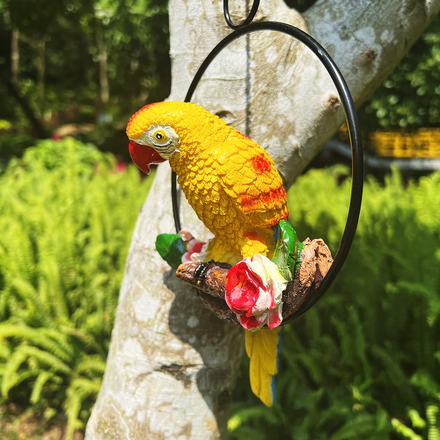 Der praktische Eisenhaken an den Krallen lässt sich je nach Dicke der Unterlage anpassen - so sitzt der Papagei sicher auf Ästen, Blumenkübeln oder Geländern. Aus der Ferne wirkt die Deko so realistisch, dass deine Gäste sicher zweimal hinschauen werden. Umweltfreundlich und geruchlos - perfekt für innen und außen.