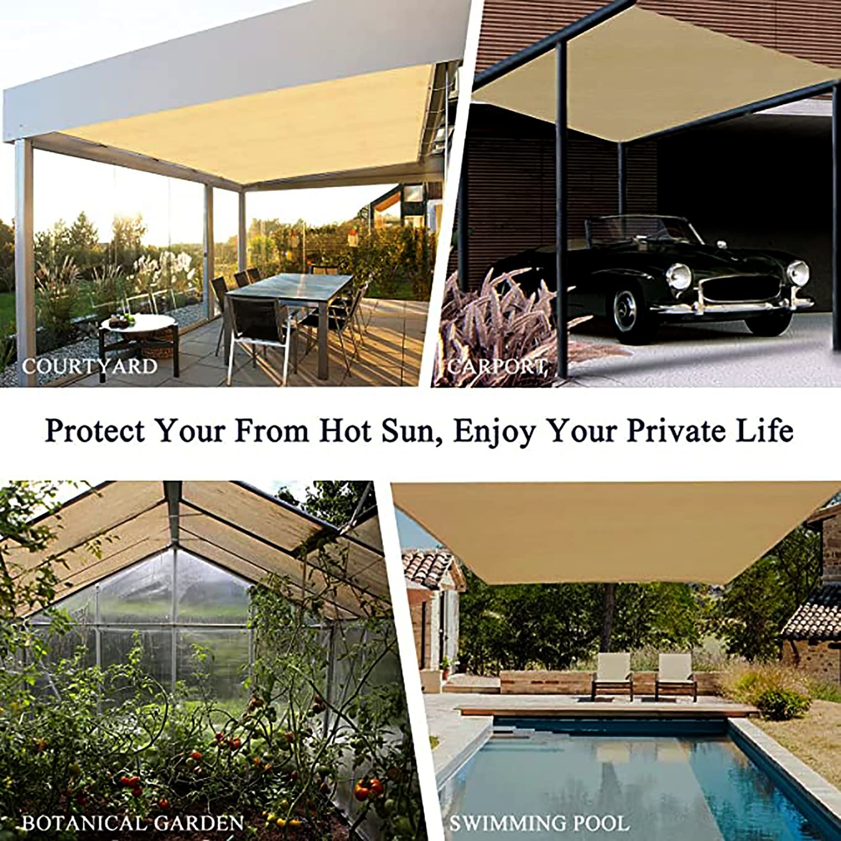 Perfekter Sonnenschutz für deinen Garten! Dieses hochwertige Schattennetz aus HDPE-Material bietet satte 90% Schatten - ideal um Terrasse, Balkon oder Gartenbereich angenehm kühl zu halten. Mit der 6-Nadel-Dichte ist das Netz besonders robust und langlebig, egal ob bei Sonne, Regen oder Wind. Die verstärkten Ösen an den Ecken machen die Montage super einfach: Einfach mit Seilen oder Haken befestigen und schon hast du einen gemütlichen Schattenplatz geschaffen. Perfekt nicht nur für Pflanzen im Gewächshaus, die vor zu starker Sonneneinstrahlung geschützt werden sollen, sondern auch für Sitzbereiche, wo du dich vor der Hitze verstecken möchtest. Das Netz sorgt für ausreichend Luftzirkulation, während es gleichzeitig UV-Strahlen abblockt. Ob für den Gemüsegarten, den Swimmingpool-Bereich oder als Schutz für Haustiere - dieses vielseitige Schattennetz ist ein echter Allrounder. Auch bei Veranstaltungen im Freien oder auf dem Parkplatz leistet es gute Dienste. Mit verschiedenen Größen von 2x3m bis 6x7m findest du garantiert das passende Maß für deine Bedürfnisse. Einfach aufspannen und den Sommer in vollen Zügen genießen!