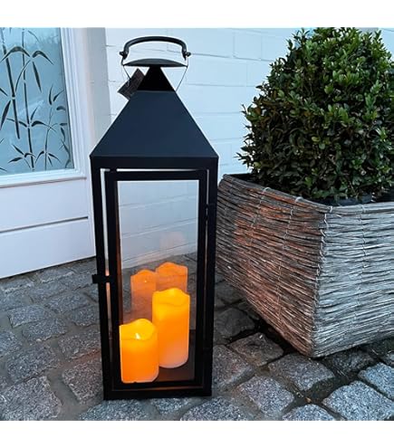 Verwandle deinen Garten in eine märchenhafte Oase mit diesen wunderschönen Sternen-Laternen! Das 2er-Set in den Größen 58cm und 41cm Höhe bringt romantische Stimmung in deinen Außenbereich. Aus robustem, pulverbeschichtetem Metall gefertigt, sind die Laternen absolut wetterfest und halten auch stärkerem Wind stand. Die einzigartige Sternform macht sie zu besonderen Hinguckern - tagsüber als dekorative Elemente, abends als bezaubernde Lichtquellen. Einfach Teelichter oder LED-Kerzen hineinstellen und die magische Atmosphäre genießen. Perfekt für Gartenpartys, romantische Abende auf der Terrasse oder einfach zur Verschönerung deines Gartens. Die mitgelieferten Glasscheiben (separat verpackt) sorgen für sichere Beleuchtung. In klassischem Schwarz passen sie zu jeder Gartengestaltung. Hol dir diesen Sternen-Zauber für dein Zuhause!