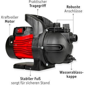 Echte Power für deinen Garten! Diese HANDY 3000 Pumpe mit Automatiksteuerung macht Bewässerung zum Kinderspiel. Mit 550W Motorleistung schafft sie satte 3000 Liter pro Stunde und eine Förderhöhe von bis zu 40 Metern. Der integrierte Trockenlaufschutz verhindert Schäden, falls mal kein Wasser mehr da ist. Einfach Wasserhahn aufdrehen - die Pumpe startet automatisch! Perfekt für die Gartenbewässerung, Hauswasserwerk oder zum Reinigen von Terrasse und Auto. Die kompakte Bauweise mit Tragegriff macht sie super mobil. Aus robusten Materialien wie Edelstahl und Technopolymer für lange Lebensdauer. Endlich keine Gießkannen schleppen mehr!