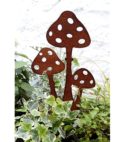 Zauberhafte Pilz-Deko für deinen Garten! Dieses 2er-Set aus wetterbeständigem Eisen bringt märchenhaften Charme ins Grüne. Ein großer Pilz (40cm) und ein kleiner (29cm) - perfekt kombiniert. Antik-Optik passt super in natürliche Gärten. Stabile Erdspieße für festen Halt auch bei Wind. Ideal für Blumenbeete, Rasenflächen oder Wegränder. Auch als Halter für Solarleuchten oder Pflanzenmarkierungen geeignet. Einfach in die Erde stecken und den Garten verzaubern! Wird mit der Zeit noch schöner durch natürliche Patina. Absolute Hingucker!