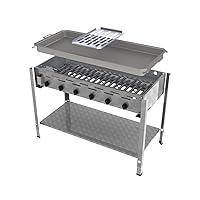 Professionelles Grillvergnügen mit dem ChattenGlut 6-flammigen Gastrobräter! Dieses Edelstahl-Monster in 1140x530x800mm ist perfekt für Großveranstaltungen, Gartenpartys oder den Einsatz in der Gastronomie. Mit 22kW Leistung und verschiedenen Aufsatzoptionen (Rost, Pfanne, Lavastein) brätst, grillst und kochst du für größere Gruppen ohne Wartezeiten. Die Piezozündung und thermische Flammüberwachung sorgen für Komfort und Sicherheit. Das Brennersystem spart bis zu 20% Gas im Vergleich zu herkömmlichen Geräten. Ob im Biergarten, beim Vereinsfest oder in der Profiküche - dieser Bräter macht einfach alles mit und hält dank hochwertiger Verarbeitung ein Leben lang. Made in Germany mit umfangreichem Zubehörprogramm!